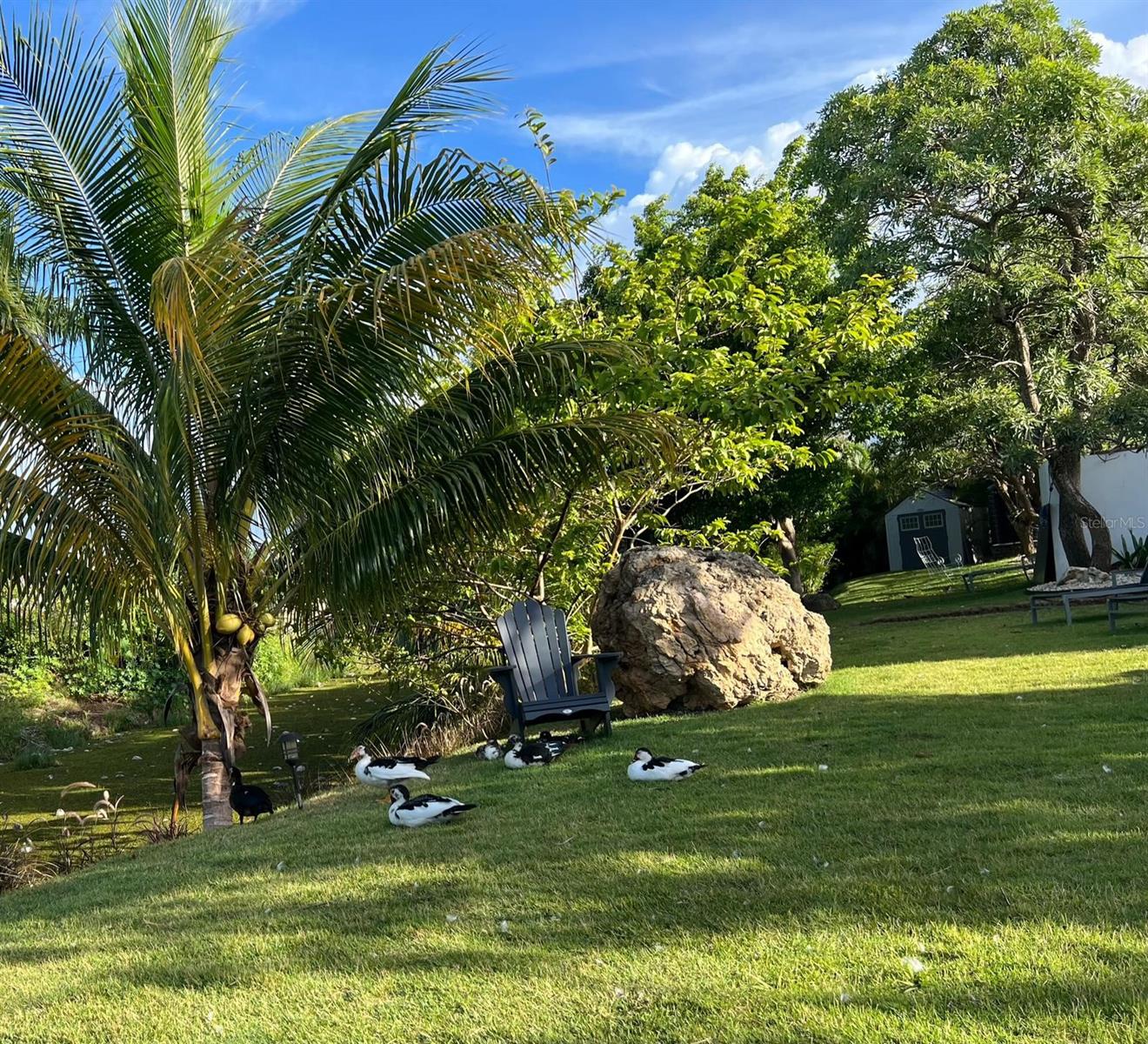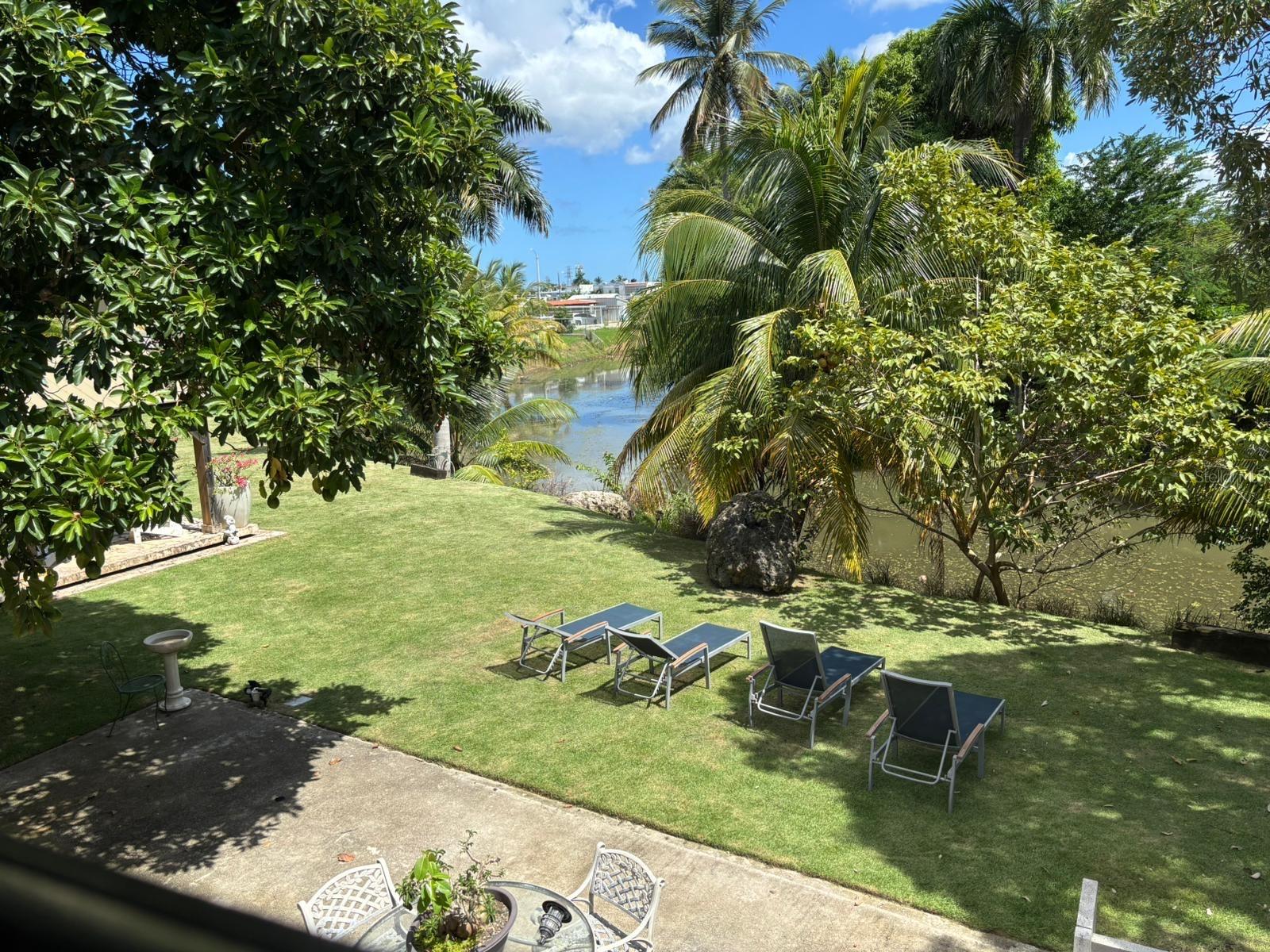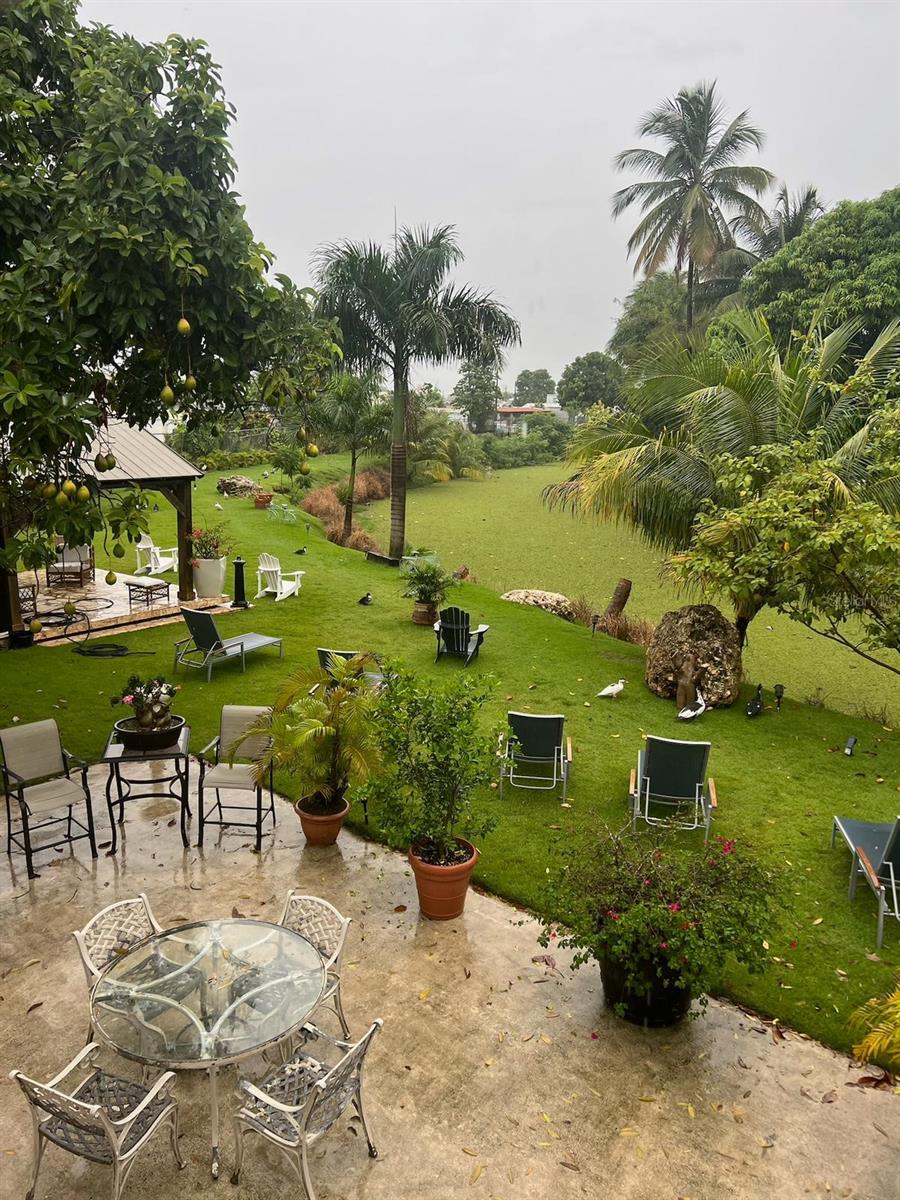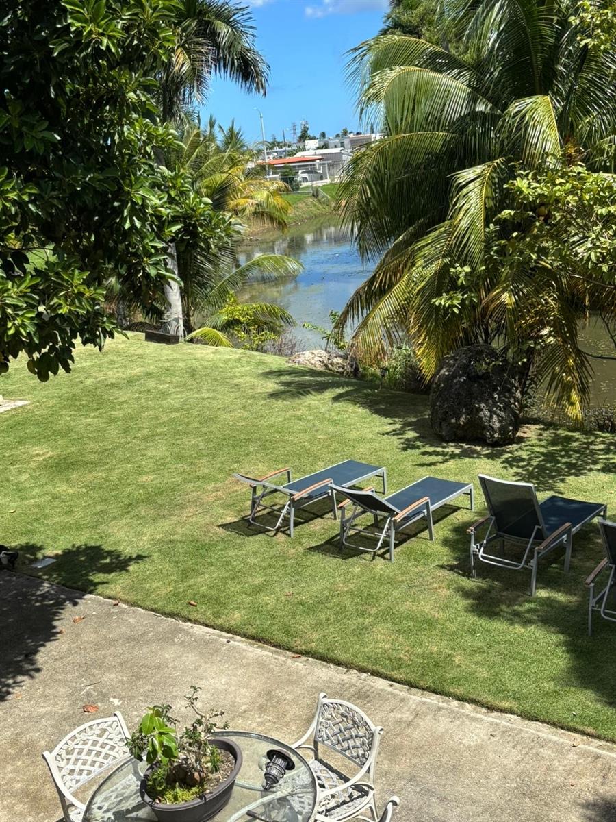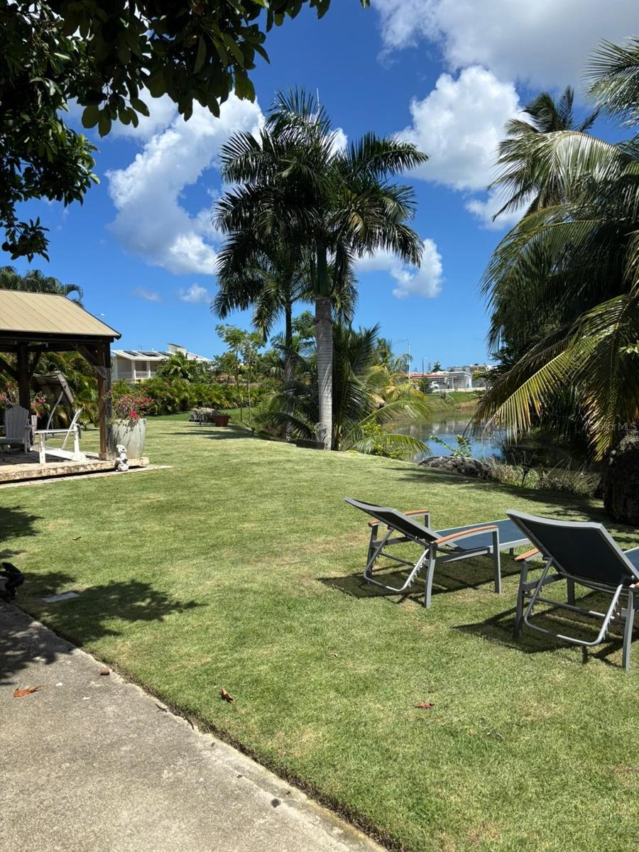 The property offers secure doors and windows for added privacy and restful sleep. Step outside to a beautifully landscaped patio with tropical plants, lake views, a gazebo, and inviting outdoor lounge area — perfect for relaxing among trees and birdsong.