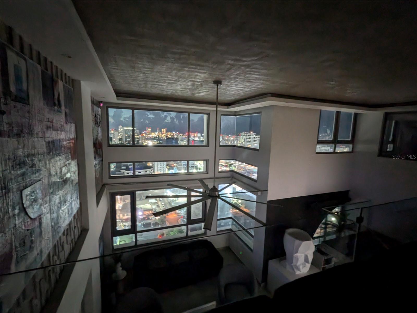 The 1,100 sq. ft. private terrace is an entertainer's paradise, featuring a full outdoor kitchen with stainless steel appliances, an ice maker, and a wrap around bar/dining area. Unwind in the private Jacuzzi or relax in the covered TV and entertainment area, all while enjoying panoramic ocean, lagoon and Condado city views. The open 2-story loft-style interior is flooded with natural light, creating a warm and inviting atmosphere.