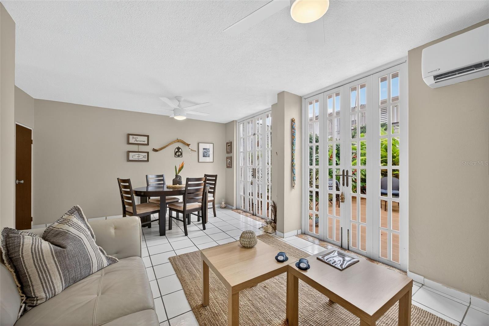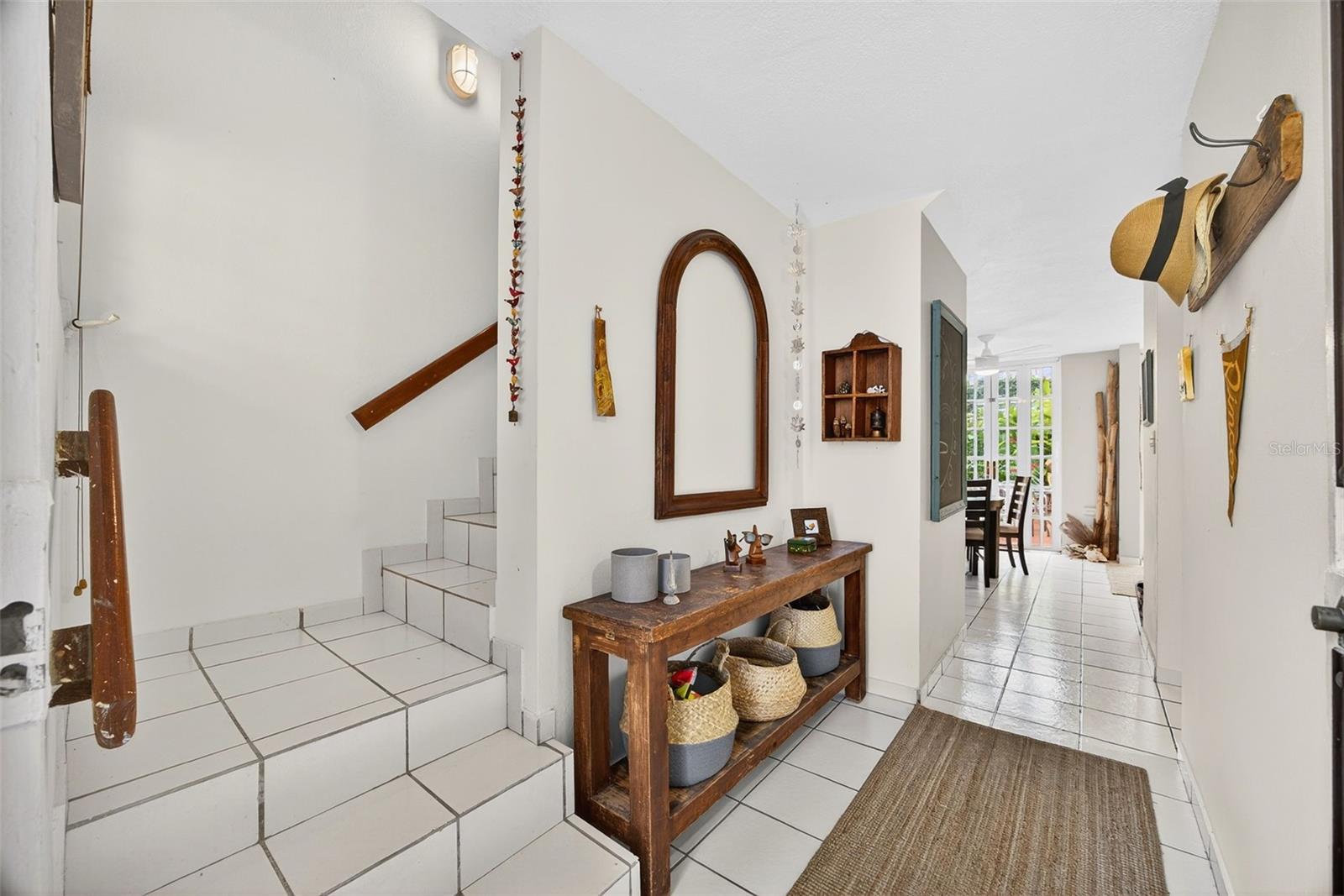 Welcome to the Blue Door townhouse located in the Vista Azul community in Rincón being sold turnkey. It is steps from the public beach (El Balneario), close to the Harbor Restaurant, the Marina and in the downtown location you will find many restaurants, stores, pharmacies, bars and the Artwalk on Thursdays. The home itself is being sold fully furnished with appliances and many extras. It includes an enclosed garage/laundry/outdoor shower and a stocked utility closet. In addition, it offers a tiled patio at the front which includes a seating area where one can read or enjoy a favorite beverage. At the entrance of the the home you will notice a beautiful wooden blue door which adds to the charm of this residence. Upon entering you will be met by a foyer with a sturdy wooden table on the left and hooks on the opposite side to place your belongings. To the right is the newly re-modeled kitchen with plenty of storage space and counter tops with a deep stainless steel sink, a refrigerator and electric stove. Continuing onto the open living room and dining room which has new ceiling fans one is met with four attractive French doors that lead to a splendid outdoor area with mature landscaping allowing for privacy whilst one sits there and relaxes. The home is tastefully furnished and well maintained. There is a revamped half-bath off to the side of the living room. The second level has three bedrooms - all with a/c's - and a fully remodeled bathroom at the top of the staircase. One of the bedrooms leads to another terrace with comfortable furniture where one can enjoy the ocean view. The primary bedroom has a queen size bed. There is a cistern on the roof. Annual property taxes are approximately $880/year. Don't miss out on this fantastic opportunity to embrace the Rincon lifestyle and be close to all of the amenities in the area. Call for an appointment or stop into the office. Must show proof of funds or be pre-qualified by a financial institution of Puerto Rico for a showing.