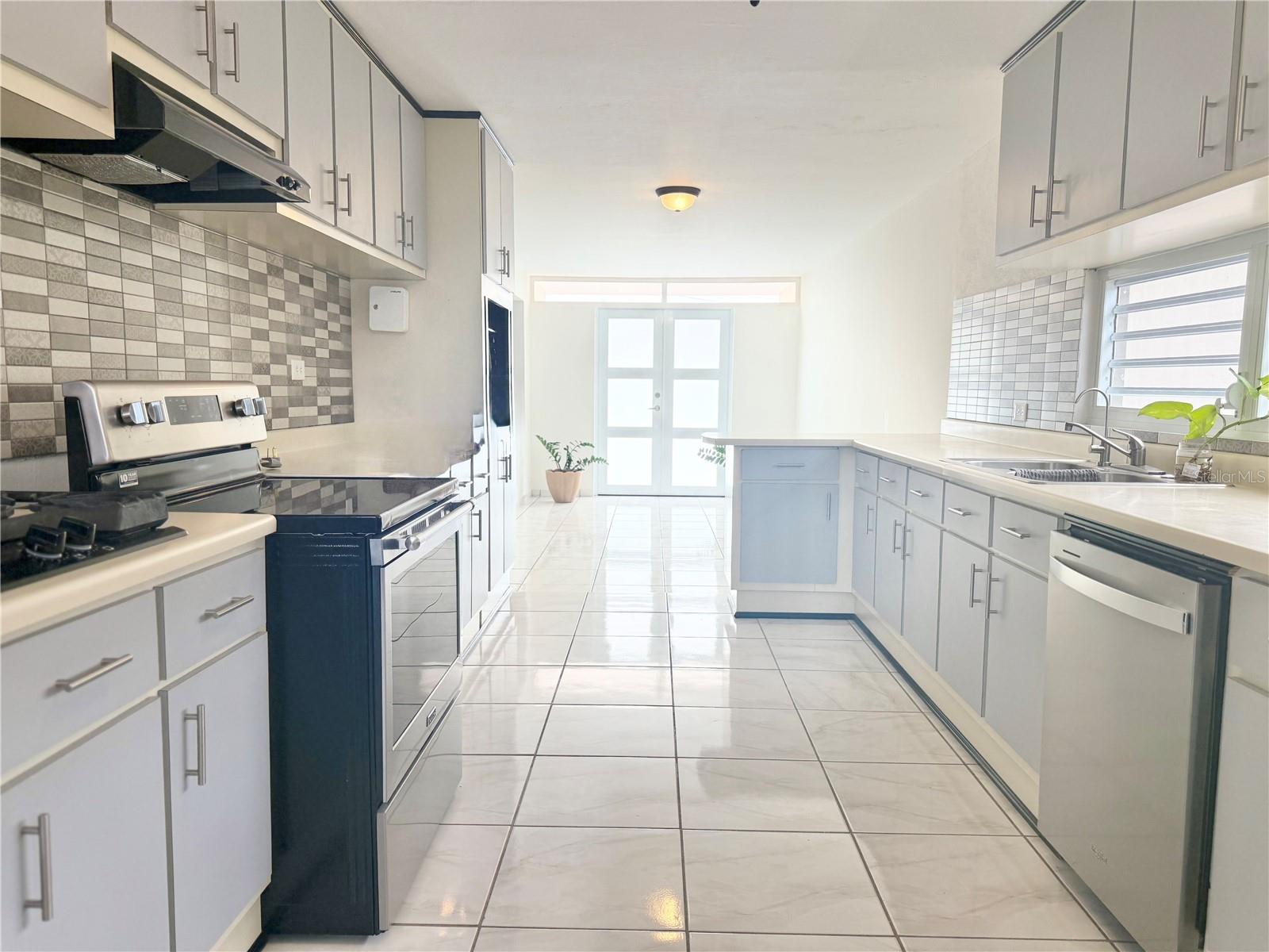 • Equipped kitchen with utensils, refrigerator, stove, and microwave