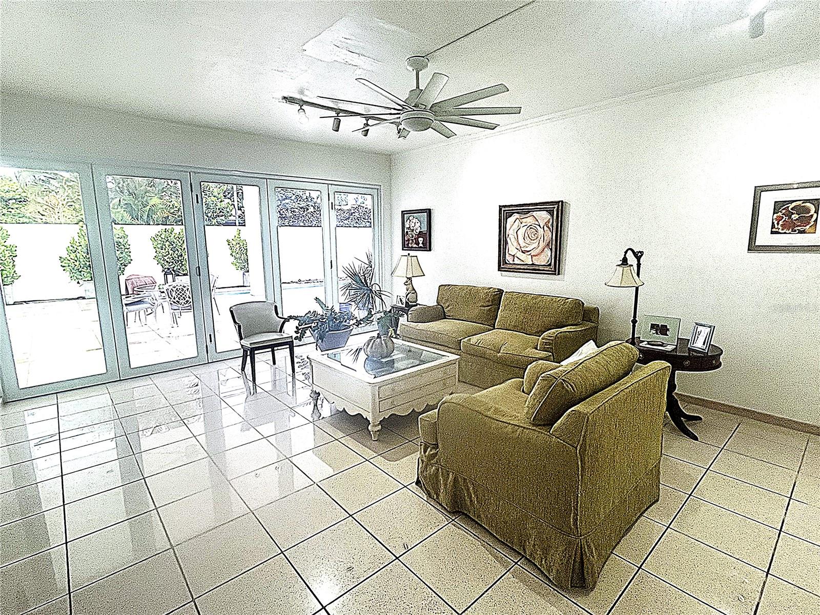 Superb location in a flat cleared lot on a cul-de-sac street. Five bedrooms, six and a half bathrooms plus detached gym. Separate private entrance for area with bedroom, 2 full baths + office or additional second bedroom or in-law area. Italian tile flooring by Graffiti throughout and hardwoods. Concrete terrace (2021) with in ground swimming pool (2021) and plenty of green area. Aluminum full glass bifold doors opening to terrace with high ceilings and in ground swimming pool. Enclosed garage and driveway. Single level living in an elevated 1050 sq cleared lot. Great location in a 24/7 secured coveted and one of Guaynabo's most exclusive neighborhood minutes to Caparra Country Club, top private schools, retail, San Patricio Shopping Center. International Airport 12 miles. Beaches 6.5 miles. Old San Juan approximately 20 minutes' drive and Dorado 25 miles. 20K Diesel Power Plant. Walk to Garden Hills Plaza, Torrimar Park and Mass Rail Transit Torrimar Station. Carefree lifestyle as HOA, Generator maintenance, landscape maintenance and swimming pool weekly maintenance are all included. Furniture optional. By appointment only.