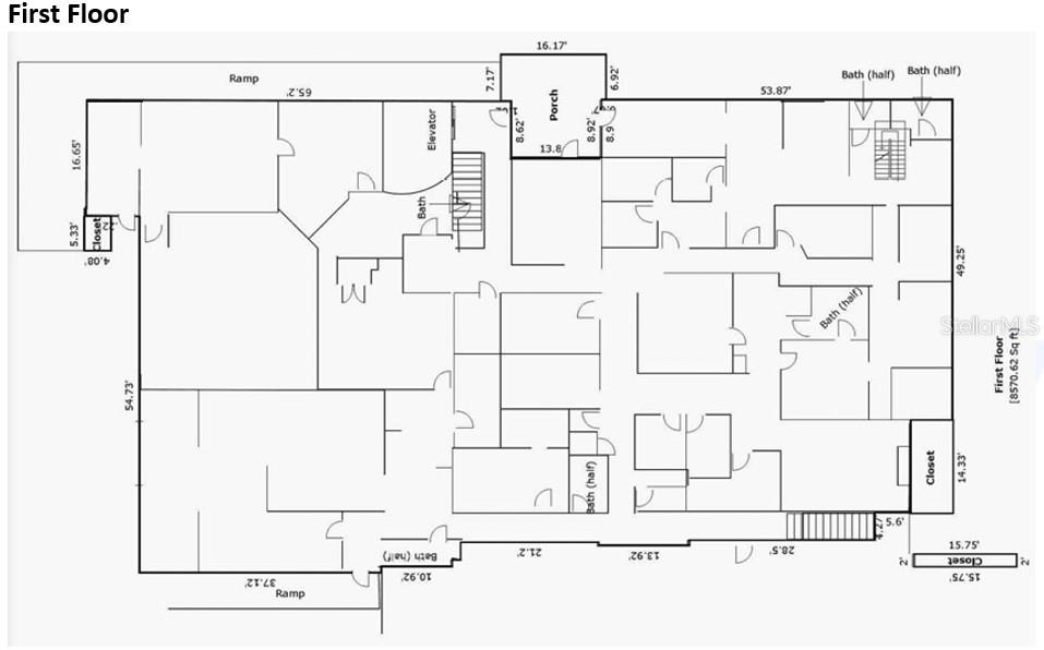 Commercial building/triple-frontage lot located at the intersection of José Martí, Padre Rufo, and Jamaica Streets (Floral Park, Hato Rey, San Juan). Lot size: 1,618 m²; construction: 14,227 sq ft distributed across a basement plus 3 levels. Reinforced-concrete structure formerly used as a clinical laboratory and medical offices. First level with multiple rooms (offices, X-ray, MRI), 8 half baths and 1 full bath; basement: 1,381 sq ft. Second level with offices, conference room, cubicles, and 3 half baths. Small third level with rooftop access. Fourteen open parking spaces. Zoning: R-I. Flood zone: Zone X (outside flood-risk area). Highest and best use: commercial. The property requires repairs.
