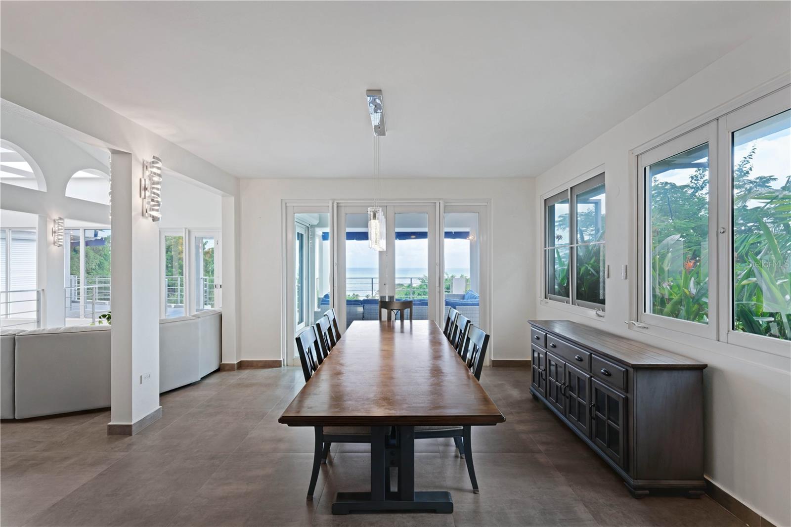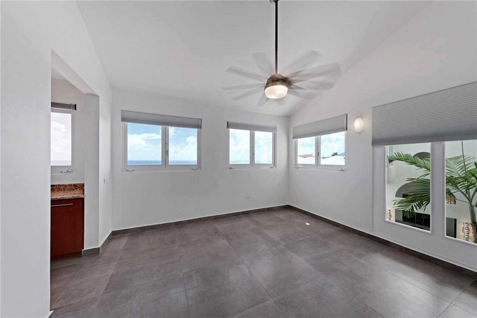 Nothing short of spectacular vistas from high above the sea side cliffs of Ridge Top Road in Palmas Del Mar, at 12 Ridge Top. This slopeside estate offers 5 bedrooms, 5 full bathrooms with 2 half baths, in a custom-designed 3 story layout complete with elevator floor to rooftop. With just over 5,116 interior sq.ft of air-conditioned living and approx. 2,413 sq.ft of exterior living, this gated suburban country estate satiates the desire for both view and space. Boasting a contemporary aesthetic illuminated by warm natural light throughout, the 23’ in ceilings highlight the uniquely private nature of this highly coveted street. Serving as the perfect space for entertaining, the entry level features an oversized sitting room, powder room and guest suite, retrofitted with its own private wet bar and kitchen. On the ground floor, double sized open areas serve as combined living and dining, seamlessly connecting to the gourmet eat-in kitchen and covered terraces, affording 180 degree scenic vistas from different vantage points. 2 bedrooms, of which one offers a suite bath, and 2 powder rooms, round out this level's offerings. Affording the utmost in serenity with an indoor garden and water feature, the second floor showcases a wine cellar, laundry, ensuite guest bedroom with covered balcony, and the primary suite with walk-in closet and a spa-inspired bathroom with a terrace/outdoor shower. Outside, embrace the sun with your own private oasis. The covered patio with full bath and storage space leads out to the sizable pool, adorned by surrounding tropical foliage set on half an acre of land. A 3-car garage with approx. 619 Sq. Ft. rounds out this exceptional home. Palmas del Mar is internationally renowned for its Yacht Club & Marina, golf courses, tennis courts, equestrian center, school, restaurants, shopping venues and beachfront location on the southeast coast of the island. Only a 40-minute drive from San Juan, enjoy the effortless suburban living of the Caribbean master planned oasis.