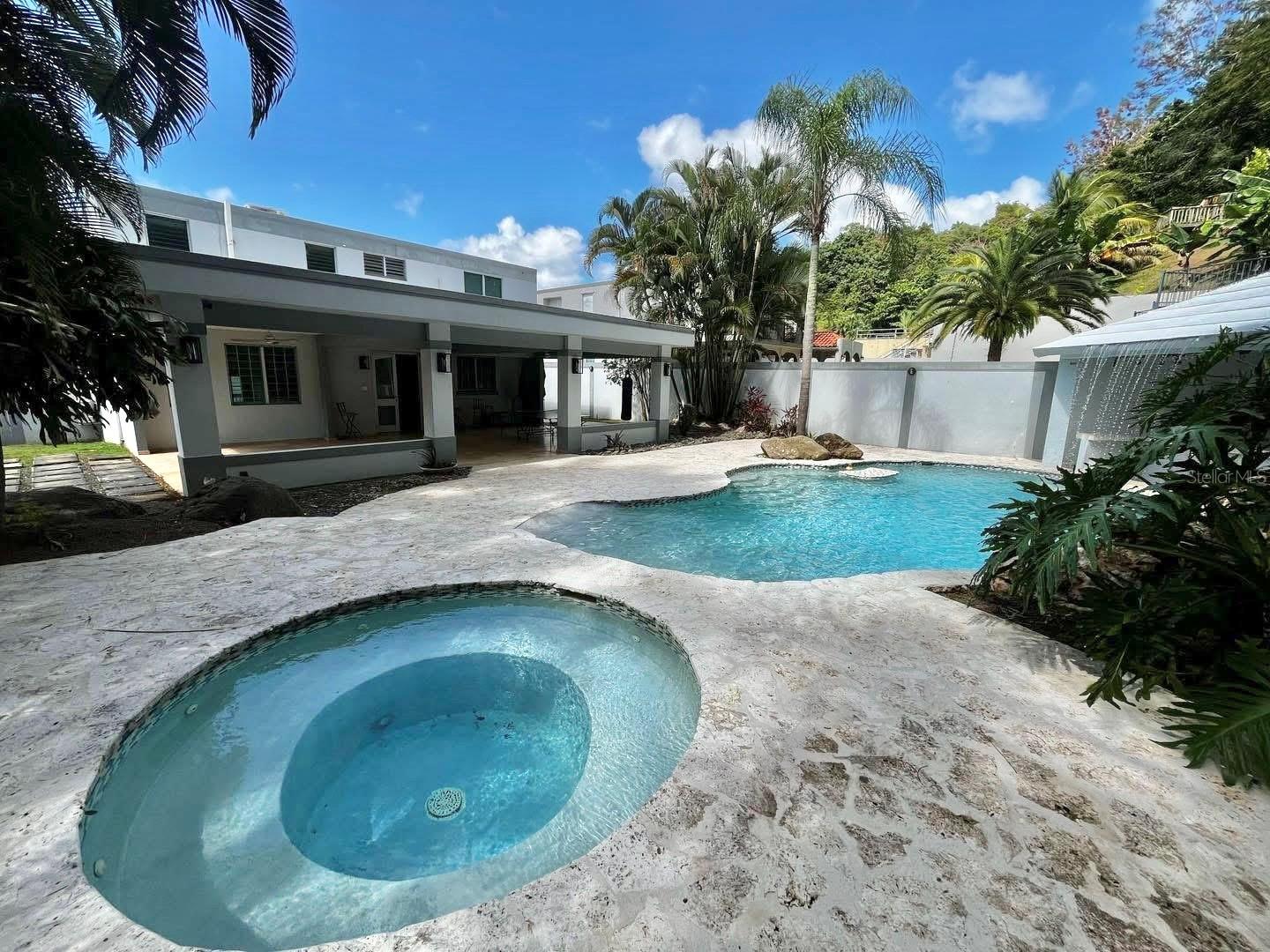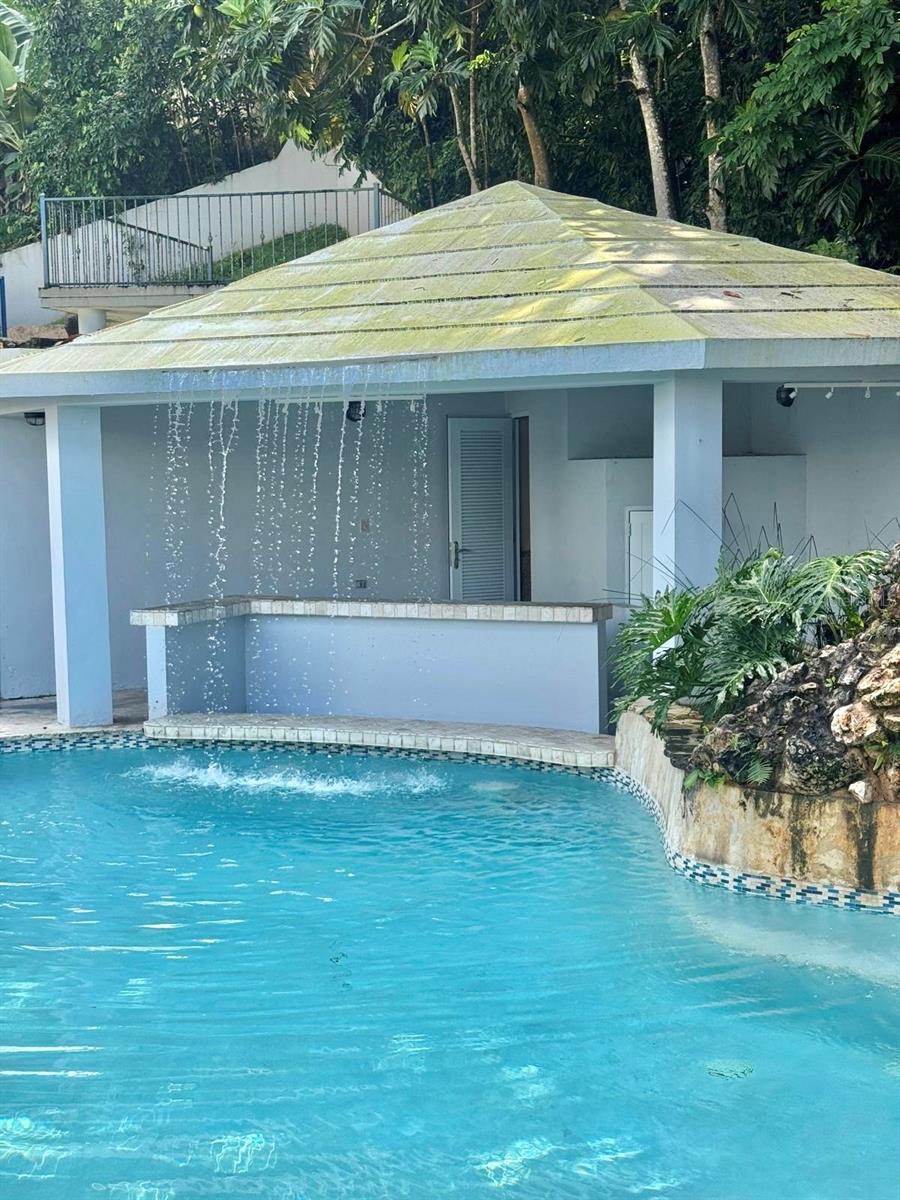 Beautiful home in Montehiedra. The rent includes HOA ($236.00 monthly), pool maintenance, gardening services, inverter maintenance every 6 months, and security fees. The property features 4 spacious bedrooms and 3.5 bathrooms, including one in the pool area, which also has a jacuzzi, stools and a table inside the water, fountains, a swim-up bar with sink and countertop for appetizers. It includes a water cistern with electric pump, 5 inverter A/C units, refrigerator, stove, microwave, dishwasher, and lighting fixtures. Covered terrace with ceiling fans. Large backyard area for activities with no rear neighbors.