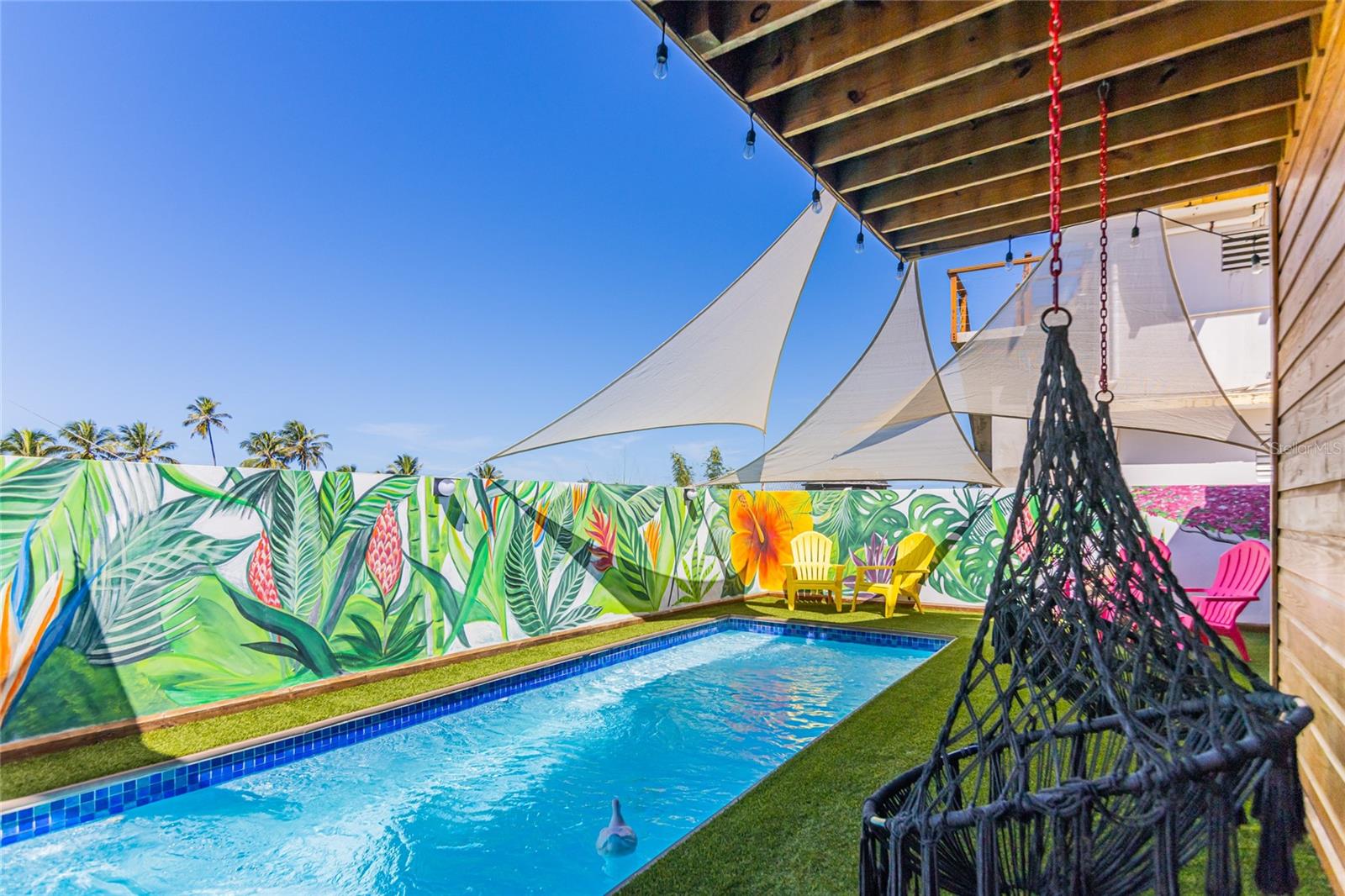 The second level offers a large loft-style primary suite with high ceilings, full-height windows, natural light, an additional seating/sleeping area, and direct access to a balcony with open landscape and ocean views. The property is connected to LUMA, and is equipped with 24 solar panels and 2 batteries that power the entire home during outages, ensuring uninterrupted residential living or STR operations. Exterior features include a pool, hammock area, covered elevated deck, flat lot surrounded by greenery, and parking for 5–6 vehicles. Located minutes from Puente Blanco, Quebradillas beaches and close to Isabela, an area experiencing steady long-term growth driven by tourism, dining, recreation and residential development.