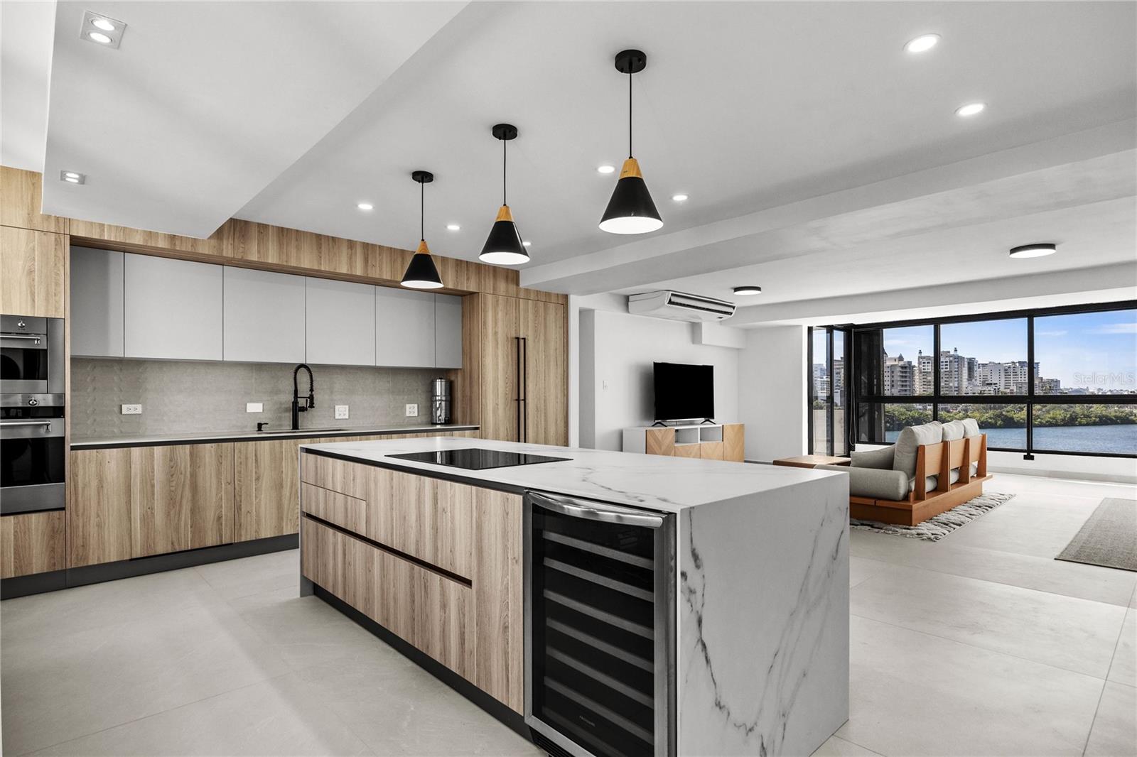 The kitchen is a true masterpiece of craftsmanship and functionality. Custom Italian cabinetry with in-line LED lighting pairs with Arklam sintered stone countertops, a premium surface capable of handling cookware straight from the oven. The integrated appliance suite is exceptional:?• Liebherr Monolith fully integrated refrigerator & freezer?• SMEG oven, microwave, induction cooktop & dishwasher?• Frigidaire wine fridge?• Kohler sink?