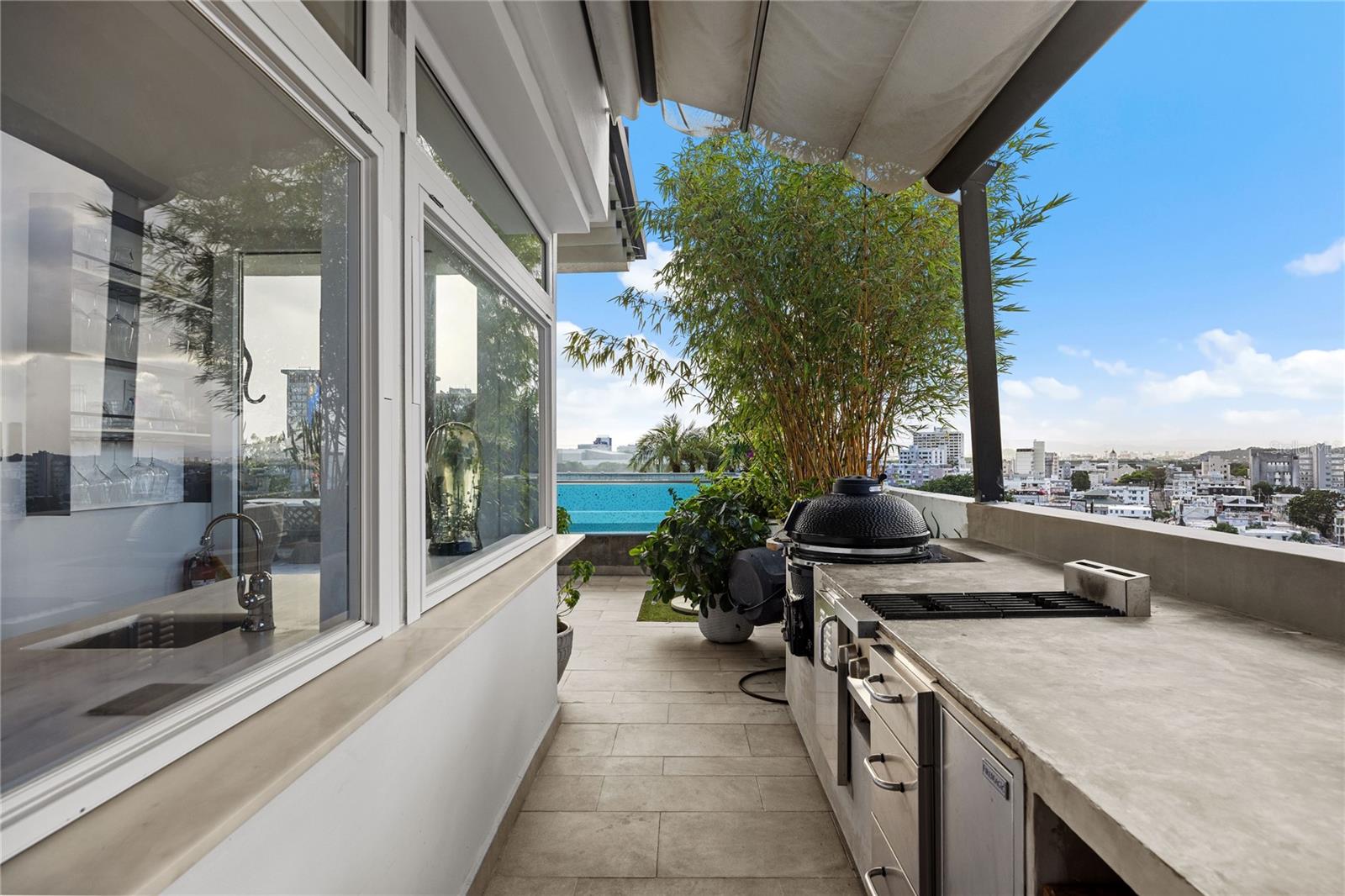 The amenities are in your own space: the salt-water pool, the outdoor kitchen, the wraparound balcony, the home office, and the gym. The terrace is a garden retreat, from bamboo to palm trees, is all about the views and the privacy. Additional features include 4 parking spaces, full power generator, and water cistern, all in a pet-friendly building with only 11 residences. The Penthouse renovation was completed in 2022 and is ready to move in.