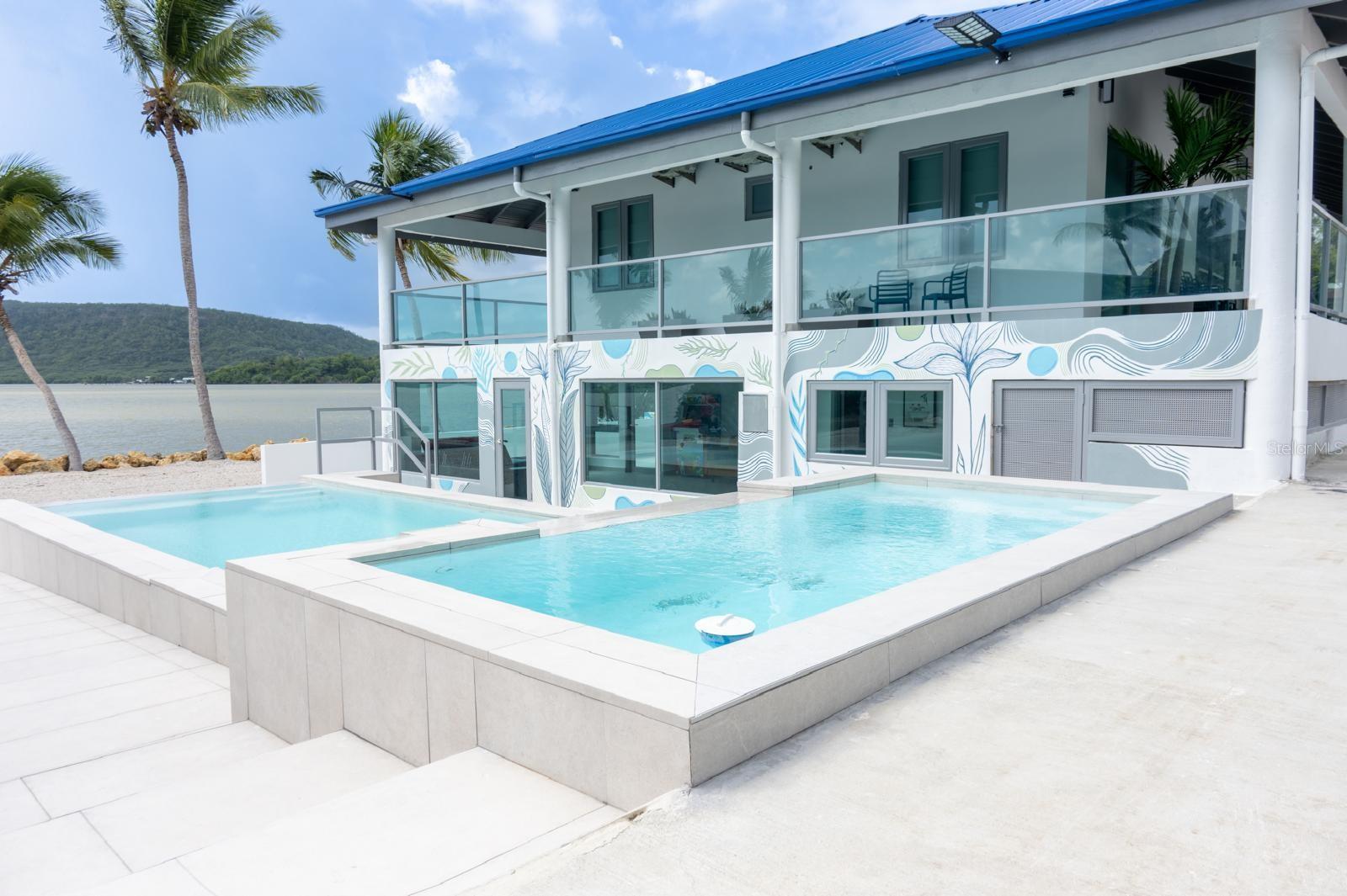 Outdoor amenities include: oceanfront pool and jacuzzi, private dock, jet ski access,