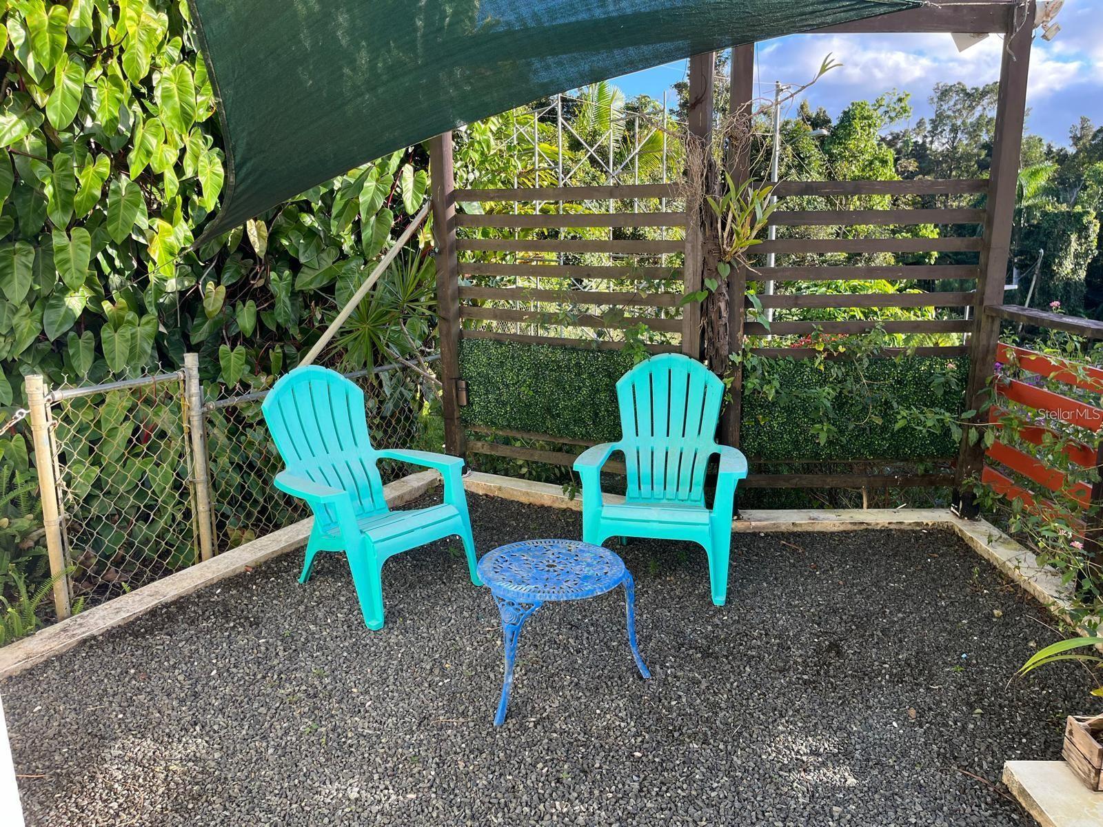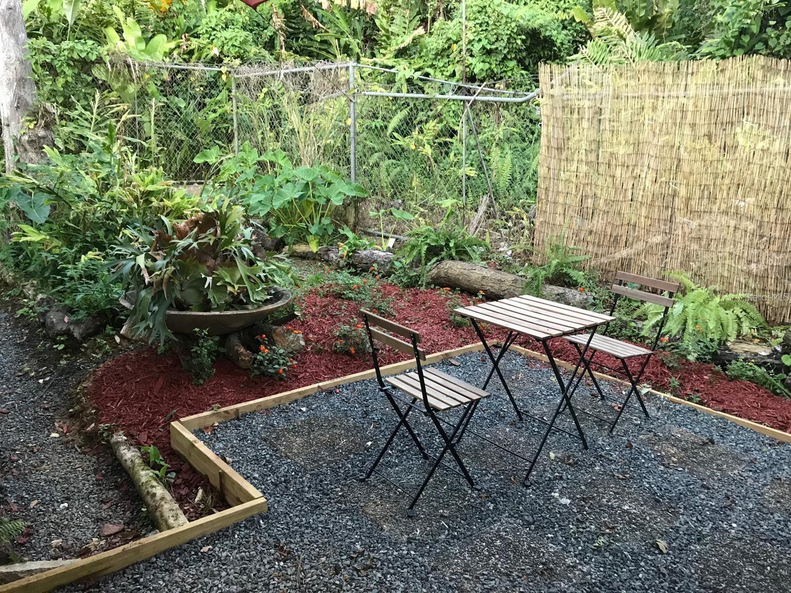 One of the concrete structures is located in front of the main wooden residence, right next to the pool, while the other studio unit is situated at the far corner of the gated entrance, as shown in the photos. Each studio offers a kitchenette, living area, bathroom, and open terraces.