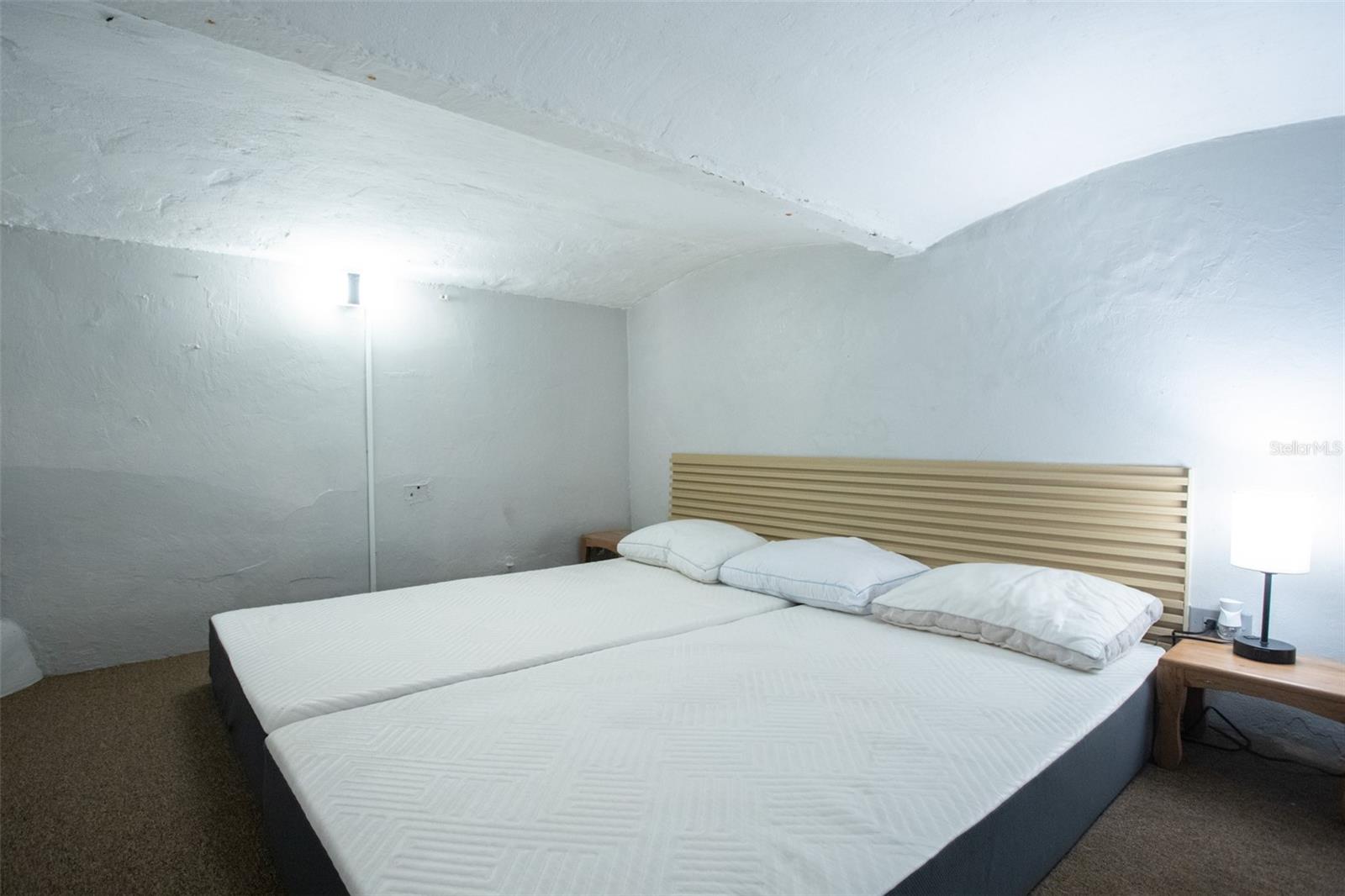 The apartment features a small but functional kitchen, in-unit washer and dryer, and an inviting layout that maximizes every inch. The primary bedroom includes a loft, comfortably sleeping up to four guests — a couple on the main bed and two additional sleepers in the loft area.