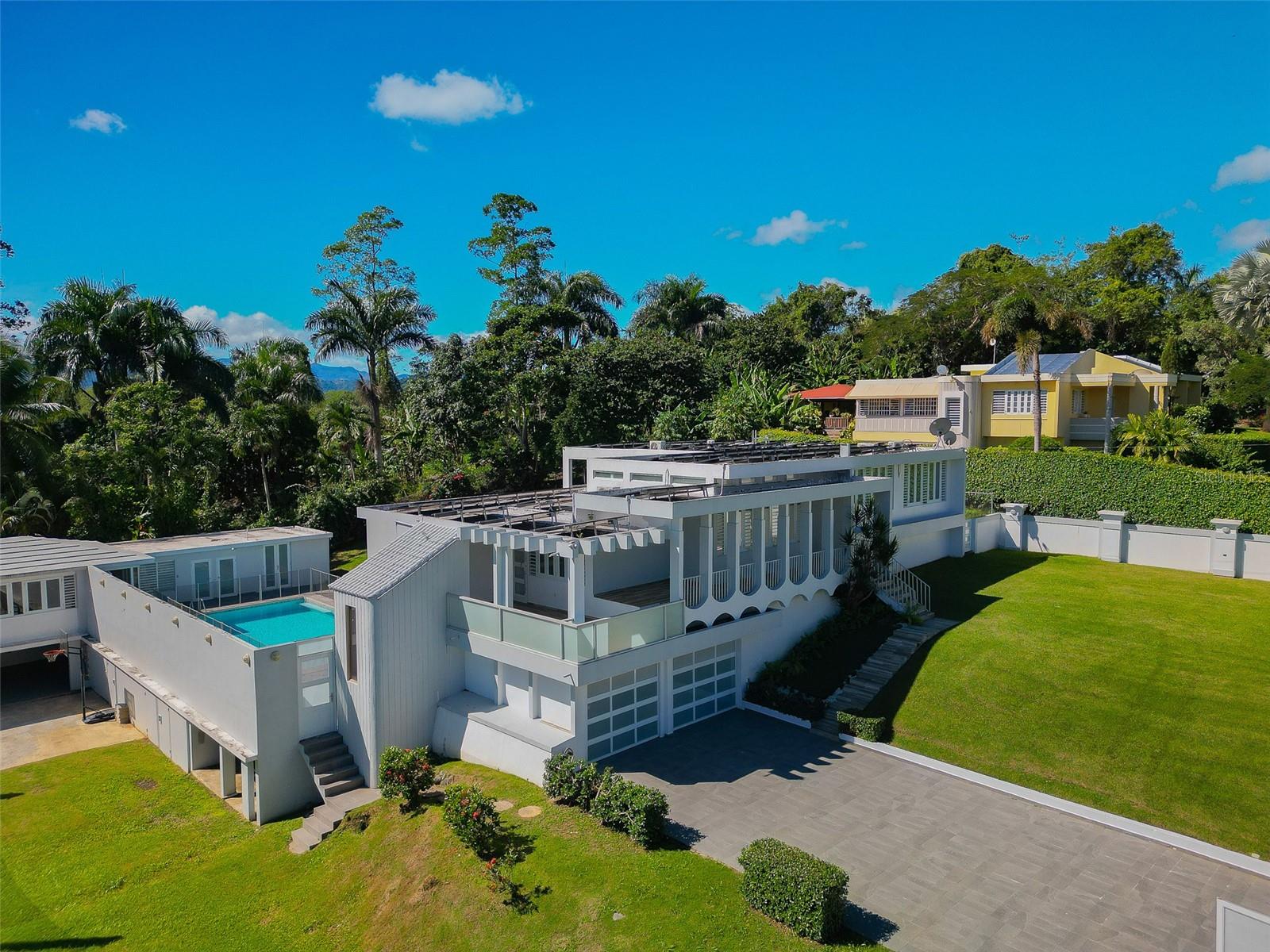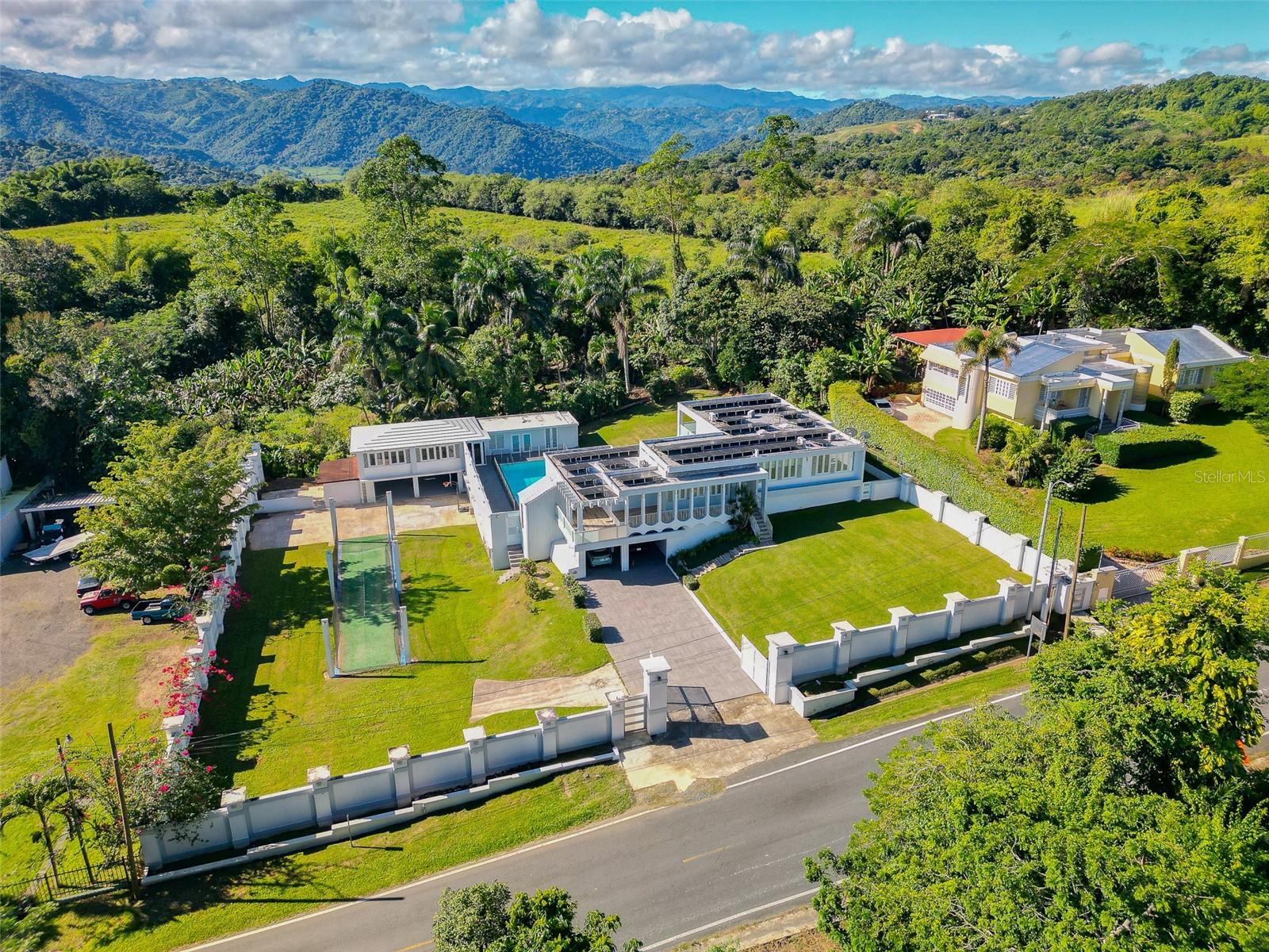 Welcome to your dream home, a stunning sanctuary nestled in Torrecillas of Morovis City. This exquisite property offers a perfect blend of luxury and comfort, boasting 2,133 square feet of elegantly designed living space situated on an expansive 3,930 square meters of beautifully landscaped grounds. With 2 thoughtfully designed bedrooms and a primary suite featuring its own luxurious bathroom and a walk-in closet with plenty of space, this home caters to your every need. Enjoy the perfect balance of private retreats and open communal spaces. Experience the joy of cooking in your fully renovated kitchen, equipped with high-end stone countertops, a state-of-the-art cooktop, and a stylish range hood, perfect for culinary enthusiasts. Step outside to discover your private paradise, featuring a sparkling pool and a relaxing jacuzzi—ideal for entertaining guests or unwinding in tranquility. The two terraces provide ample space for alfresco dining or soaking up the sun. Embrace eco-friendly luxury with solar panels and a dedicated battery power storage system, ensuring energy efficiency and peace of mind. The property includes a two-car garage plus a carport that accommodates an additional four vehicles, providing convenience for family and guests. A detached storage room with a full bath adds exceptional functionality, making it perfect for a home office, guest suite, or additional living space. This remarkable residence is not just a home; it is an experience waiting to be cherished. A spa, activity room and a batting range completes this stunning property. Whether you are hosting an elegant gathering or enjoying a peaceful evening, this property redefines upscale living in Morovis City. In addition to cash sale, and mortgage financing, financing by seller is an option. Do not miss this opportunity to make this luxurious oasis your own! Schedule a private tour today and envision the lifestyle that awaits you in Morovis.