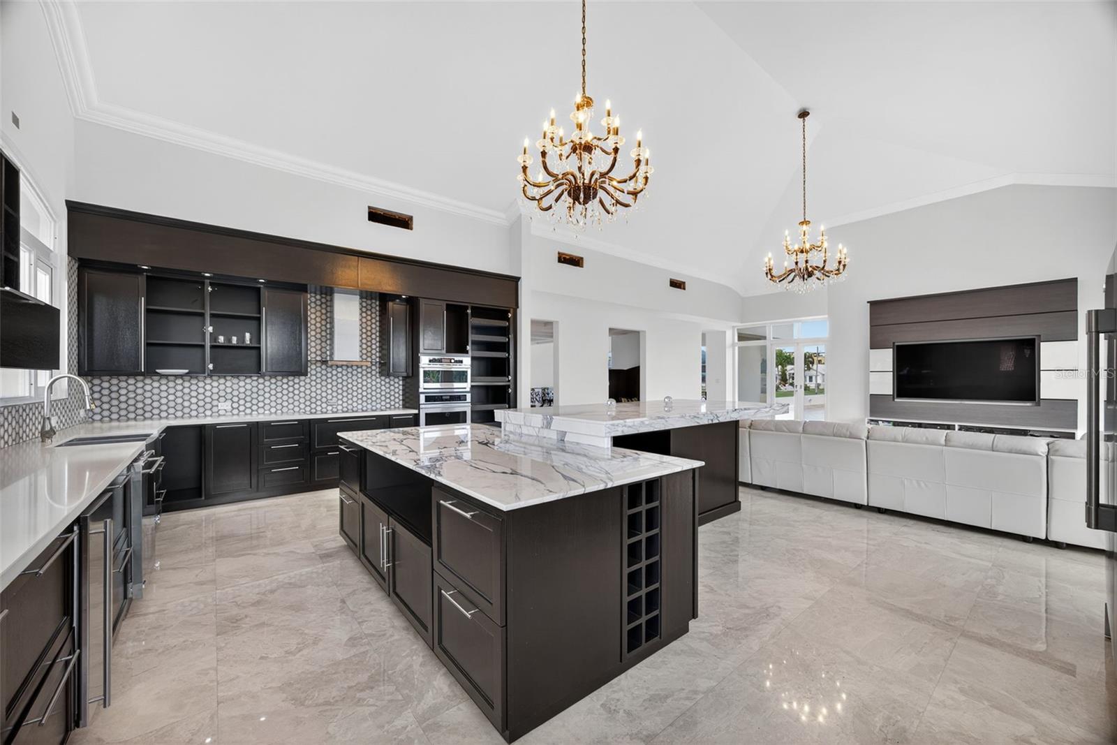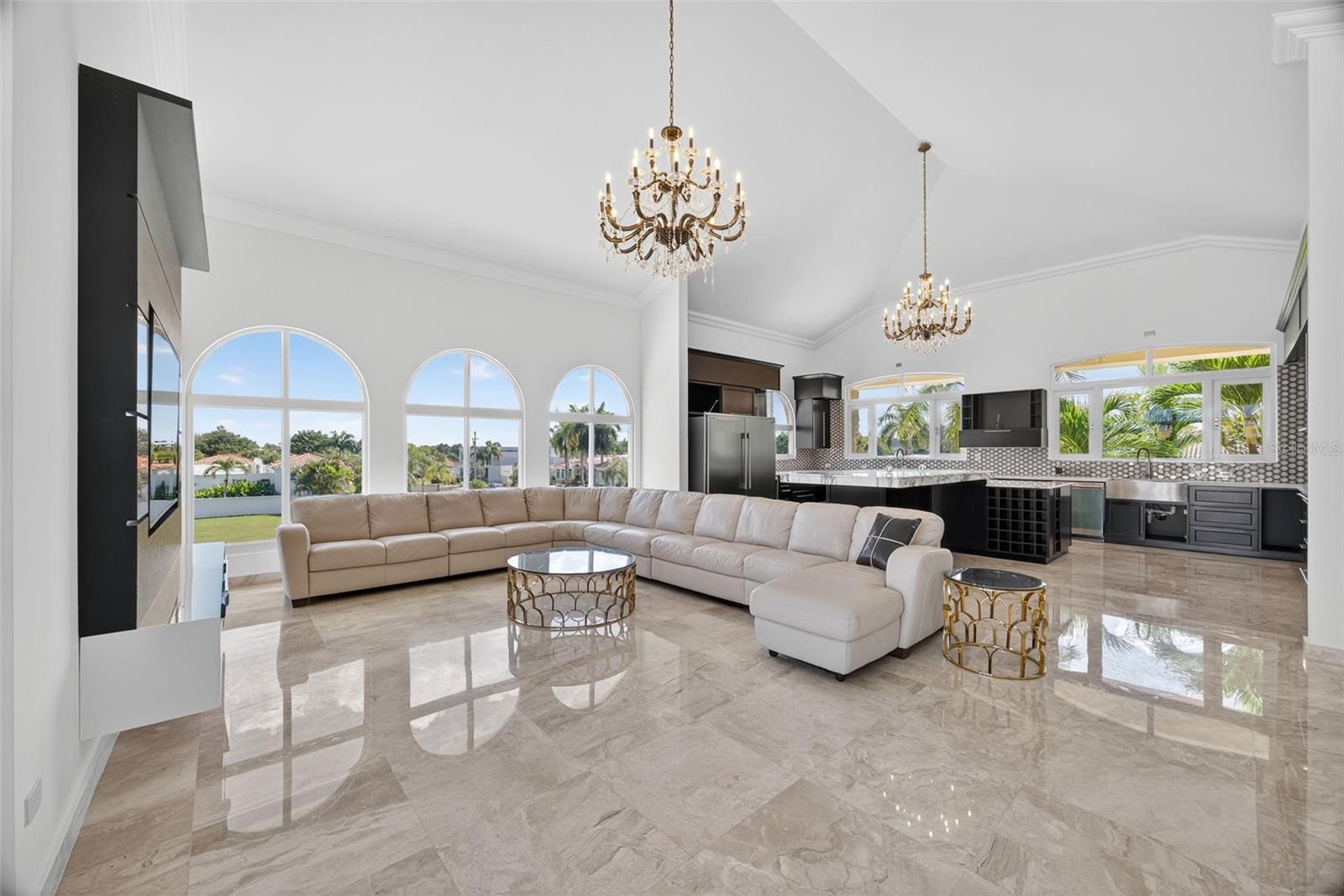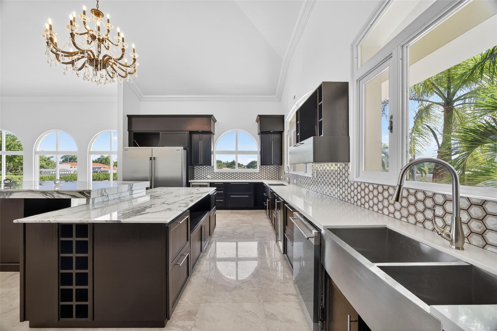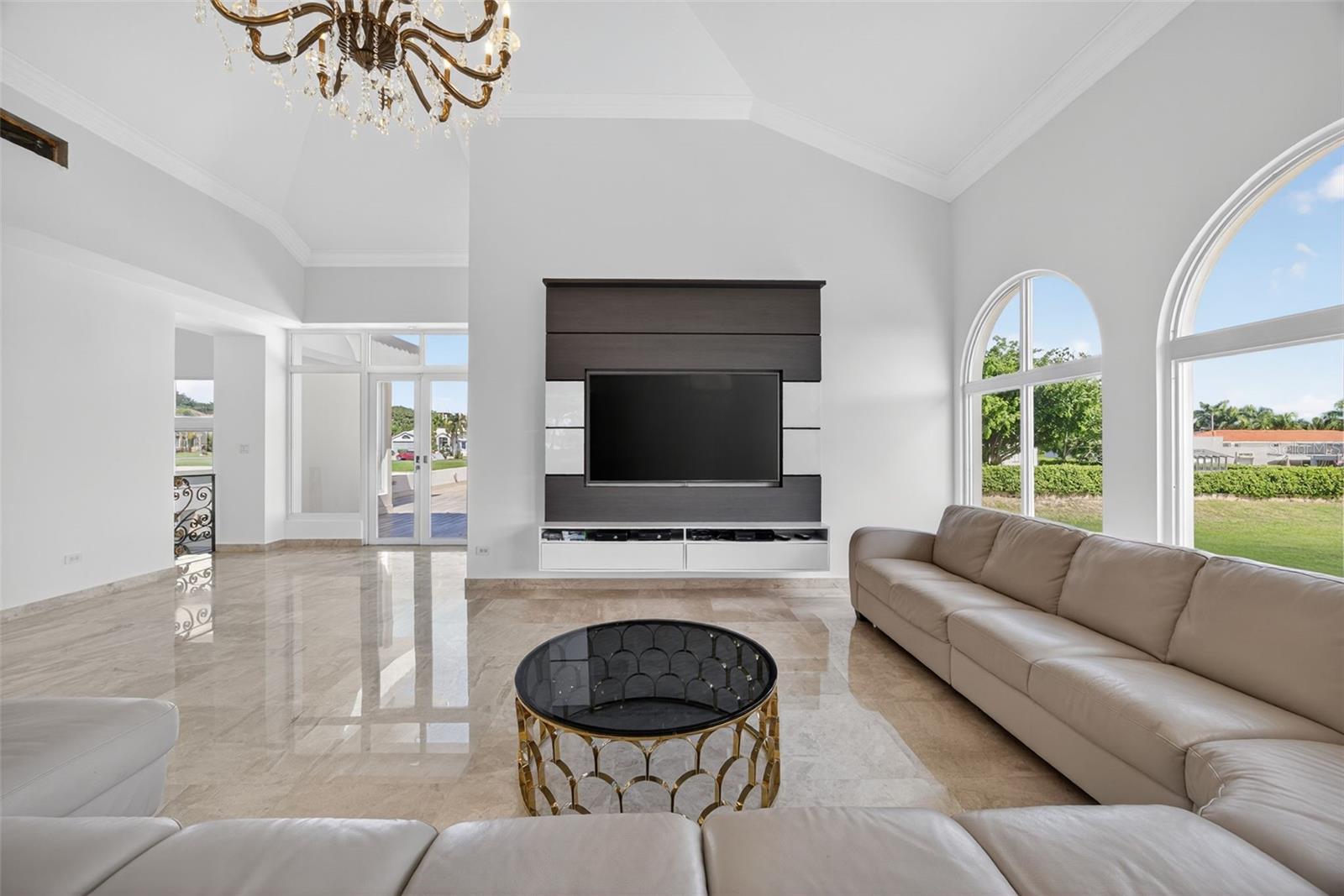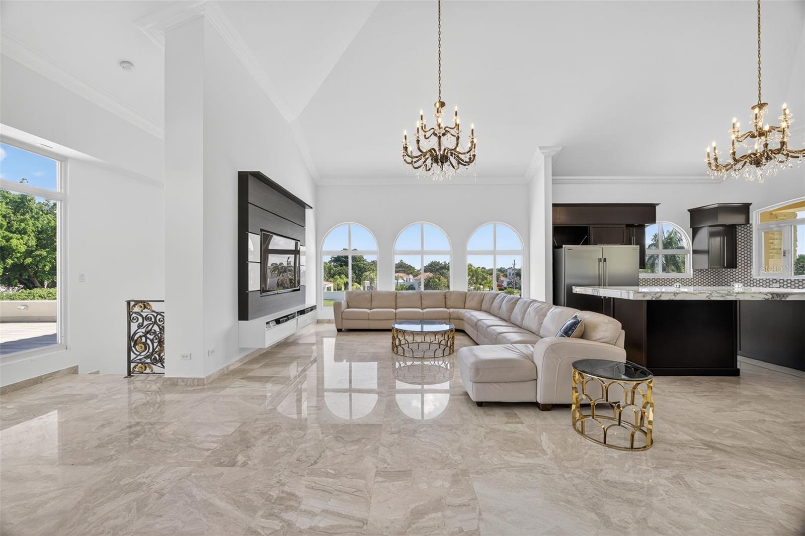 A double-height foyer, dual circular staircases, and stunning crystal chandeliers set the tone for elegance. Spacious living and dining areas connect seamlessly with a chef’s kitchen—perfect for both family living and grand entertaining.