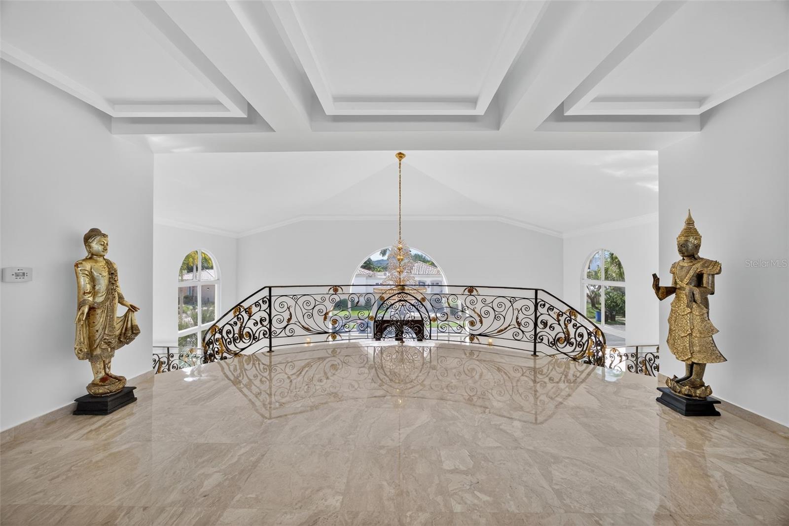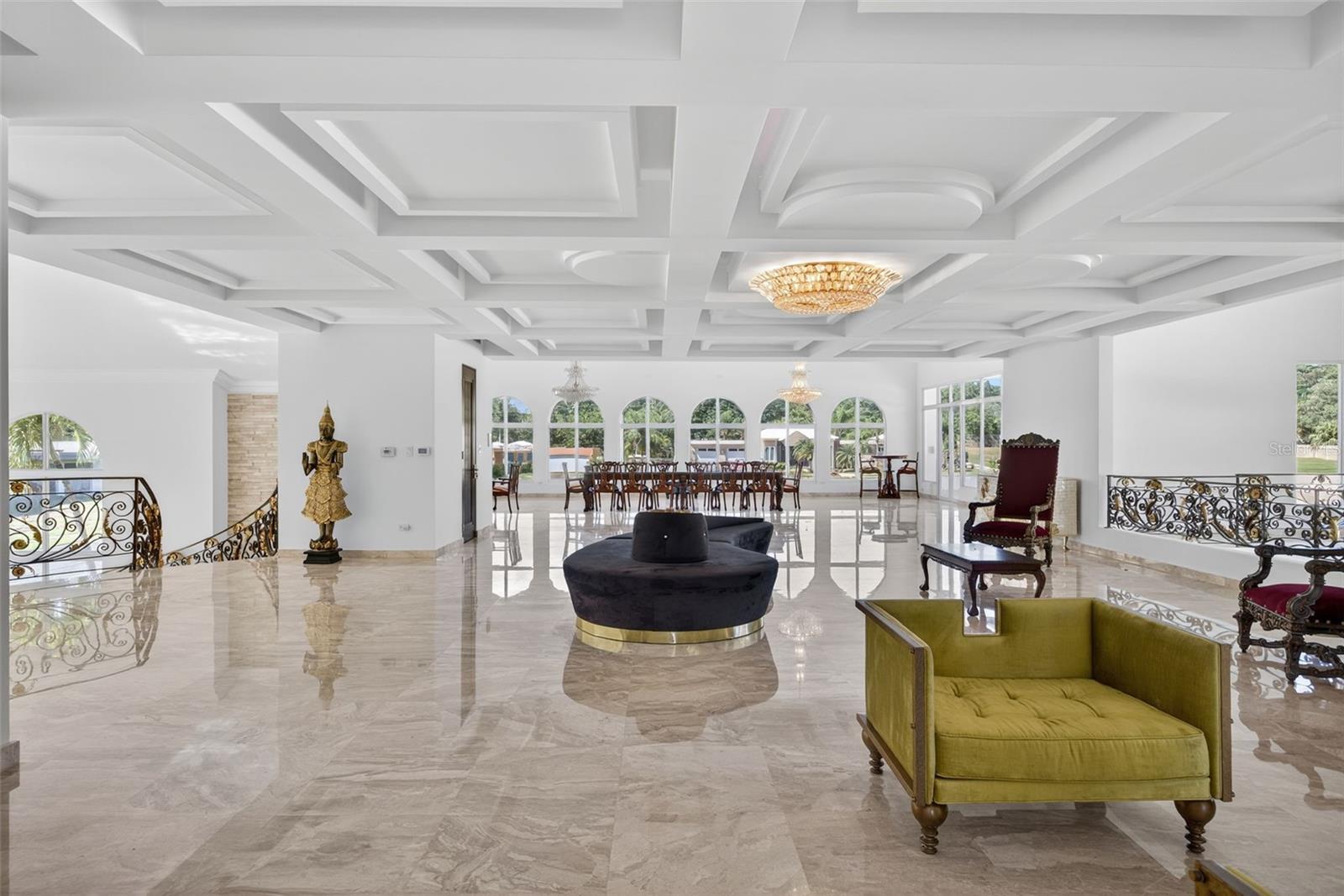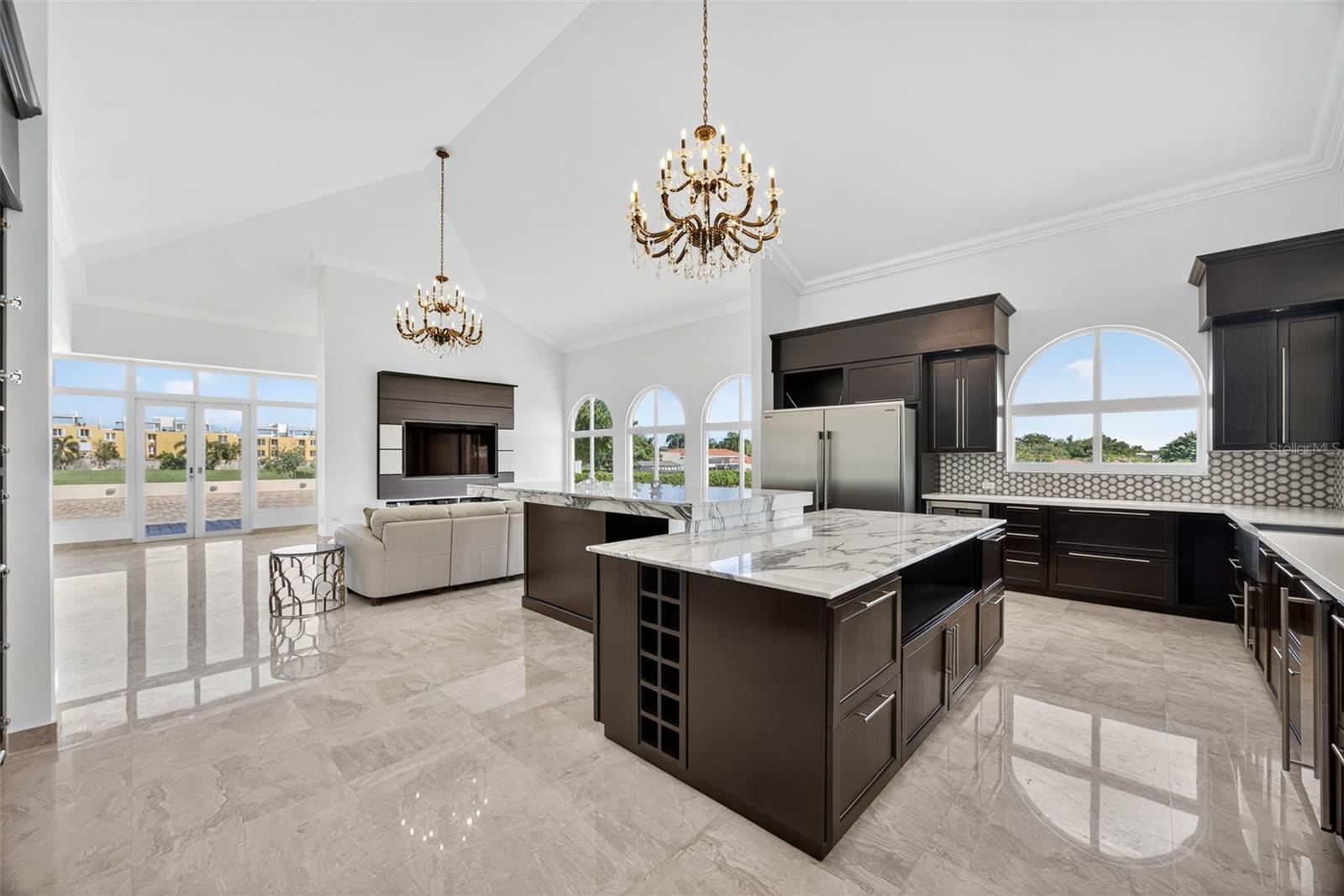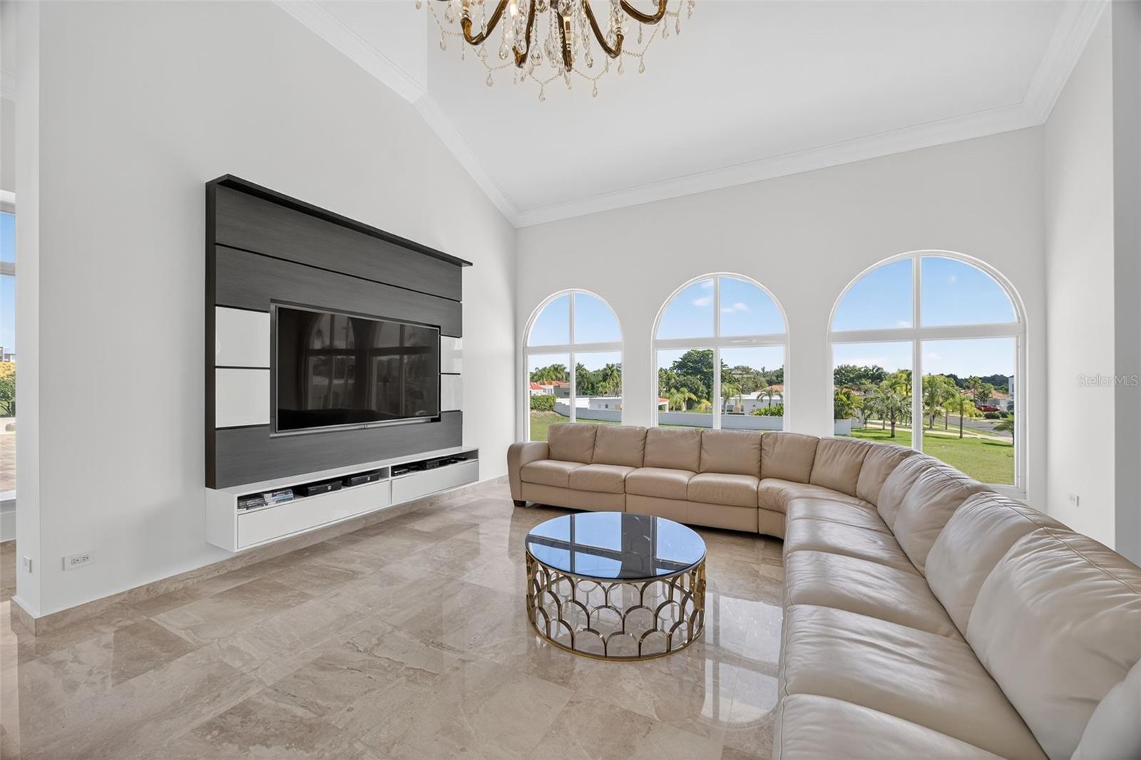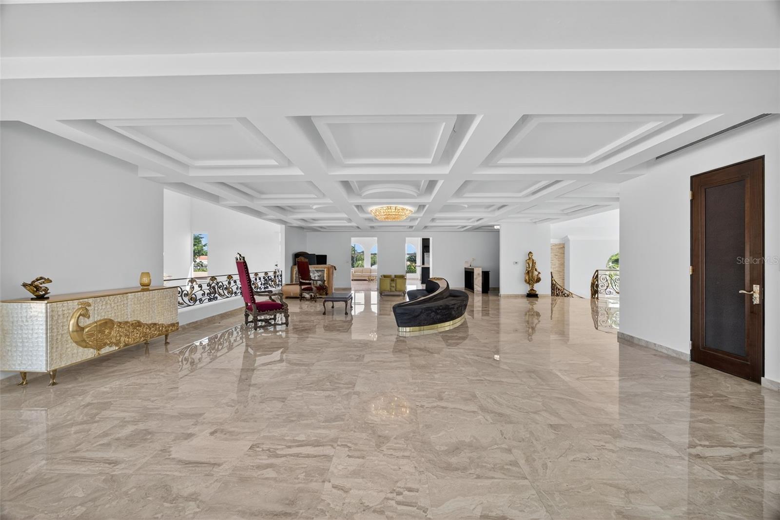 A double-height foyer, dual circular staircases, and stunning crystal chandeliers set the tone for elegance. Spacious living and dining areas connect seamlessly with a chef’s kitchen—perfect for both family living and grand entertaining.