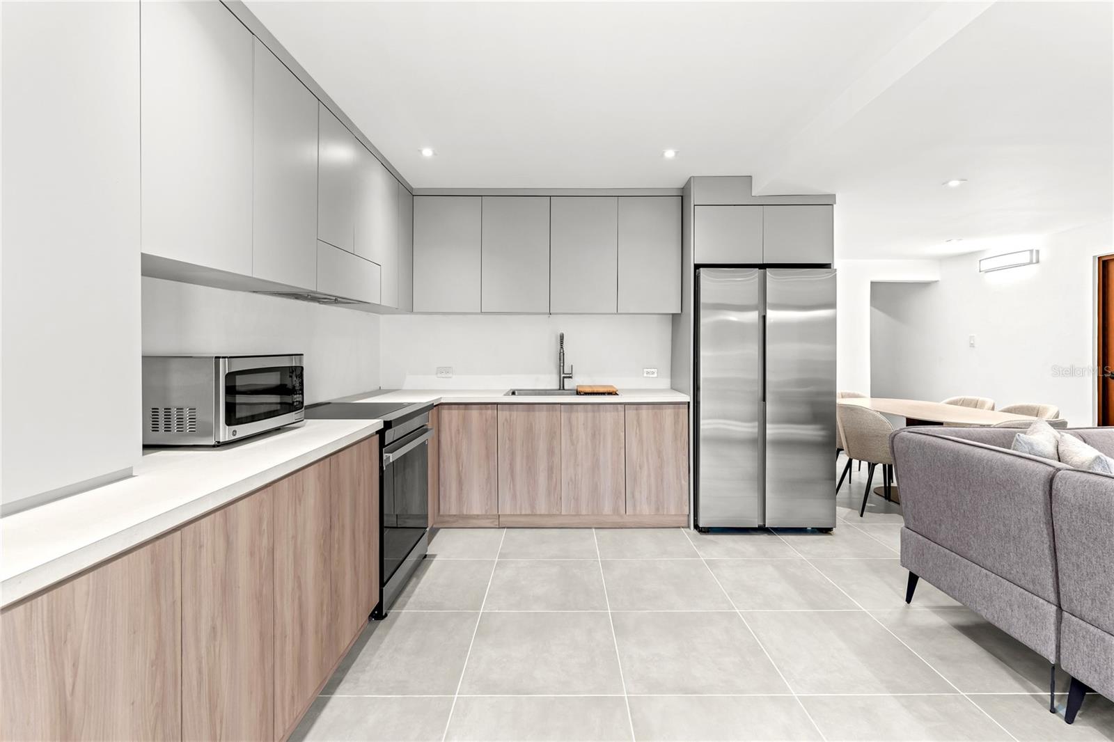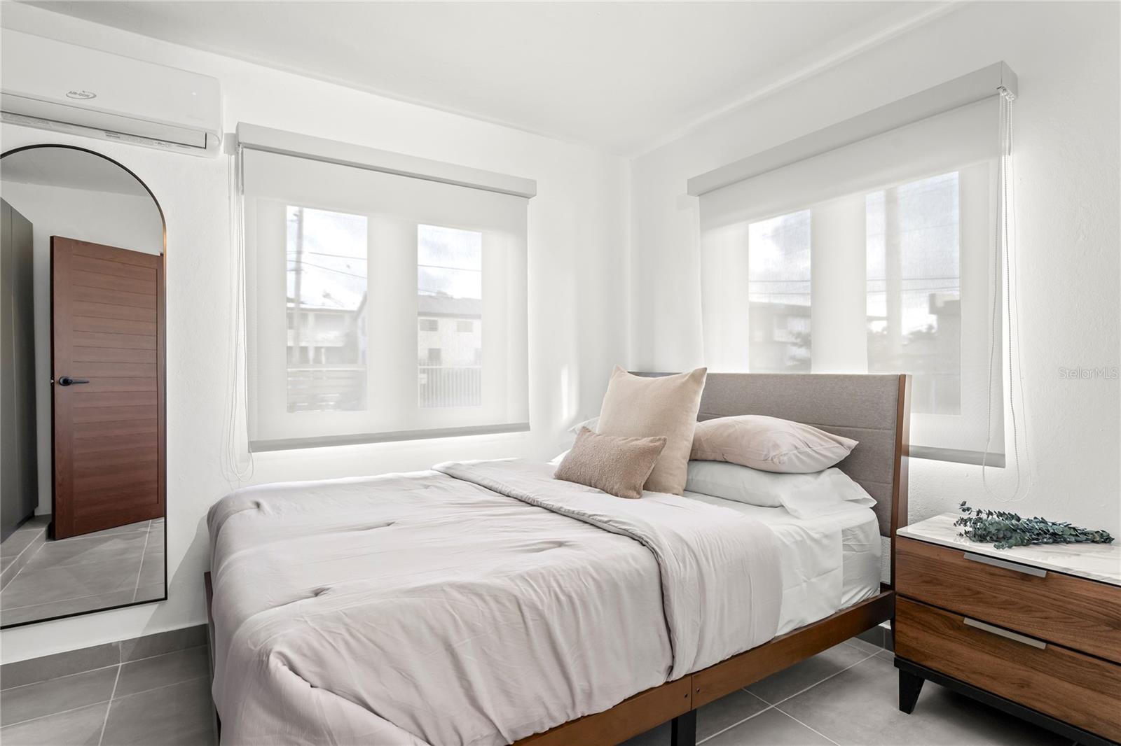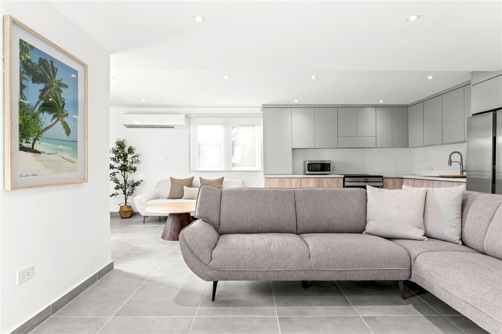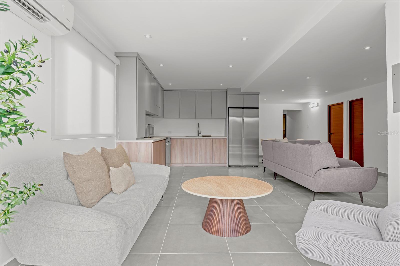 Move-in ready remodeled investment property in Isabela with short term rental potential. Modern facade with driveway and ample parking spaces, fully remodeled and furnished, featuring a custom kitchen and all new appliances including refrigerator, microwave, range, washer, and dryer. The layout includes three bedrooms with modern closets and two tiled bathrooms with showers.