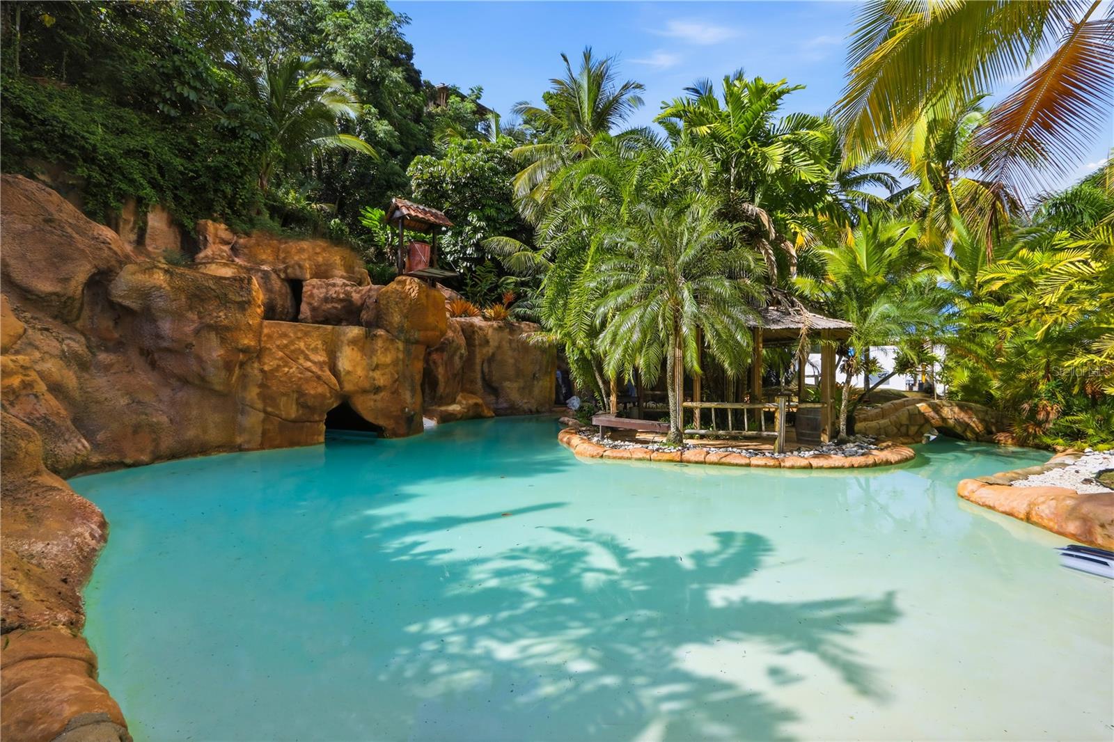 The exterior constitutes a true recreational complex. Two heated saltwater pools—one of 30,000 gallons and another of 20,000—are complemented by jacuzzis, heaters, waterfalls, and slides reminiscent of an aquatic park. Pergolas, terraces, and landscaped areas with farm-style planting zones and fruit trees integrate leisure with domestic production. For wellness and activity, the property offers a 15 x 30 ft gym, dry and steam saunas, basketball and volleyball courts with bleachers for 100 spectators, plus playful features such as an equipped treehouse and dollhouse.