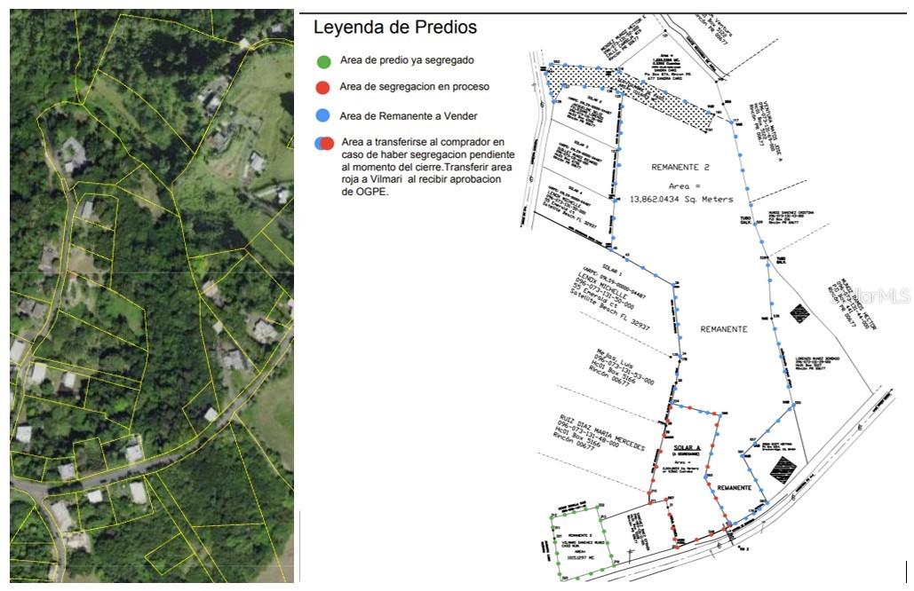 Reference images provided show the CRIM map and the segregation map legend. The area highlighted in blue represents the 13,862 square meters (3.42 acres) being offered for sale. The legend further identifies which portions of the segregation process are completed and which are currently in progress, providing transparency and clarity for buyers, investors, and developers.
