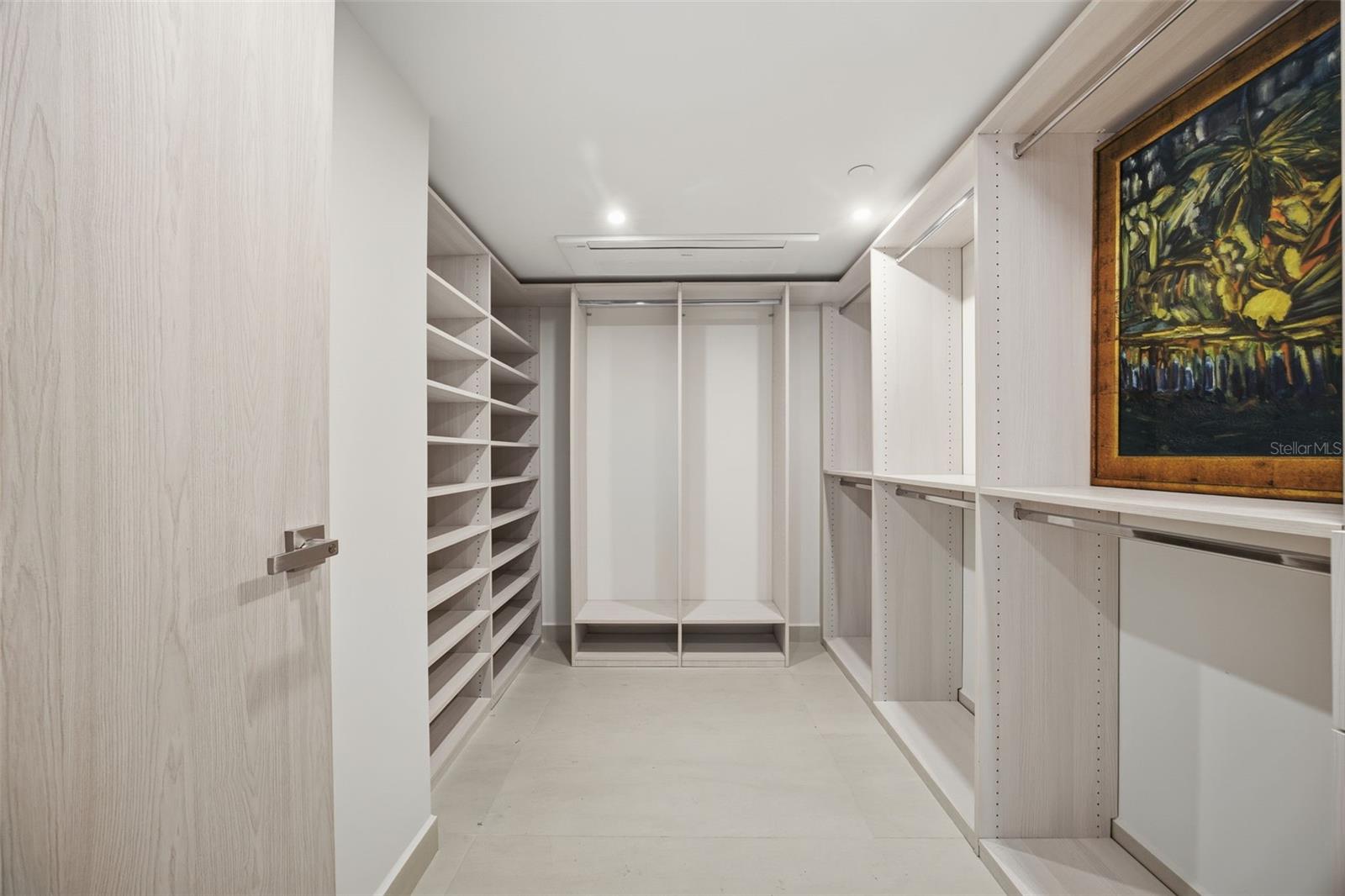 The apartment features floor-to-ceiling windows with panoramic views of the Atlantic Ocean and Condado Lagoon, filling the space with natural light and sunset views. The modern kitchen is equipped with GE Monogram appliances, a wine refrigerator, and a custom-built pantry, seamlessly connecting to the main living areas. A dedicated laundry room, custom-built closets, and motorized window treatments with both sheer and blackout curtains enhance comfort and functionality.