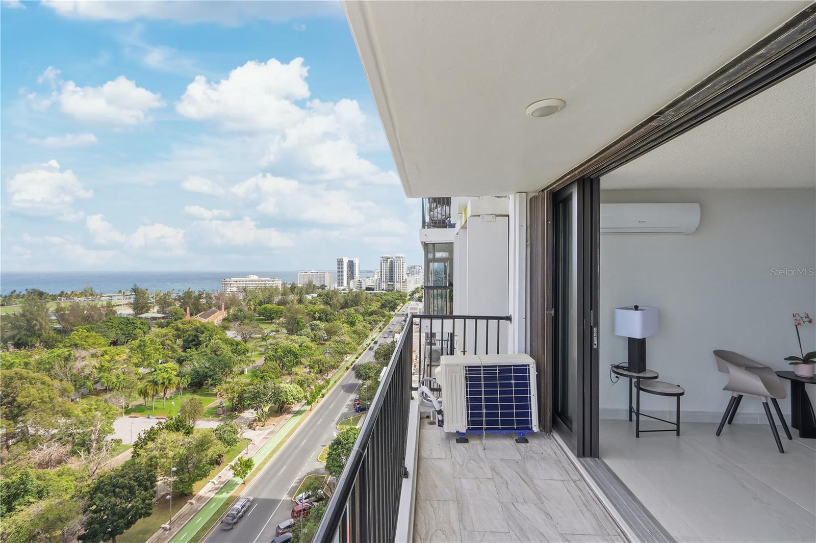 Step into this apartment and let the breathtaking views do the talking. Located on the 14th floor of the Torre de la Reina condominium, this 1,007 square foot residence features two bedrooms and one bathroom. The living room and kitchen have been updated with modern flooring, while the original parquet floors in the bedrooms have been preserved, adding warmth and timeless character. The remodeled kitchen and updated finishes complement the unit’s sleek feel, while sweeping panoramic views of Escambrón Beach take center stage. Brand-new hurricane-resistant sliding doors seamlessly connect indoor and outdoor living, and a new mini-split system enhances comfort in the living area. The apartment includes one designated covered parking space and the reliability of a full power generator. This gated community offers 24/7 security, a resort-style pool and gazebo, a designated car wash area, and an on-site coworking space known as District View—ideal for remote work or focused productivity. Enjoy exceptional proximity to the park and bike path, connecting directly to Old San Juan in one direction and Condado and Miramar in the other.