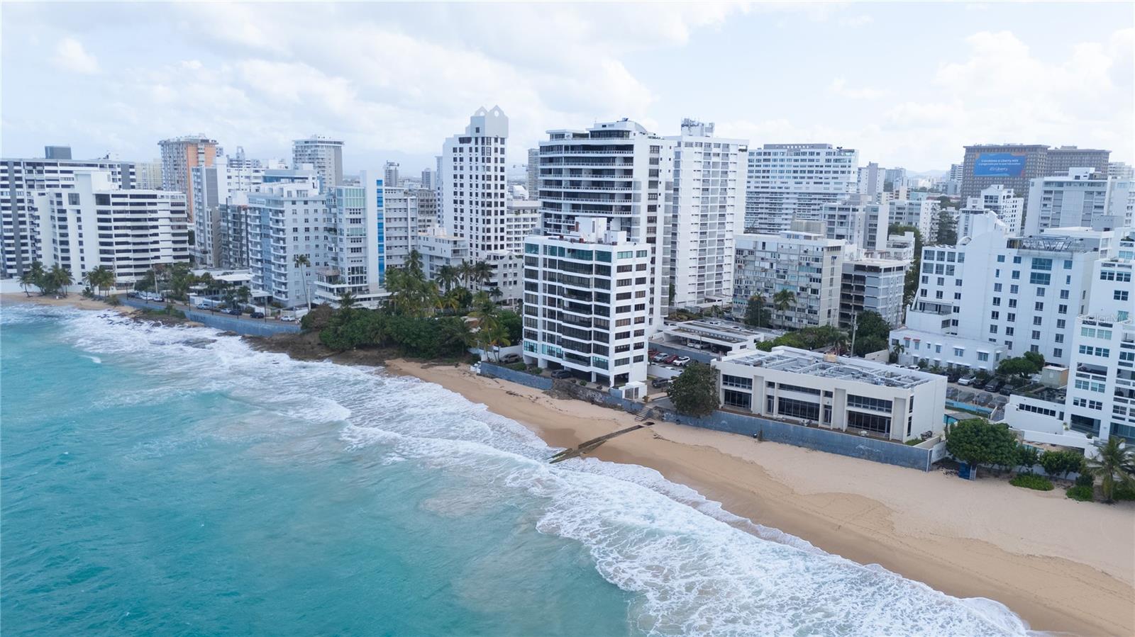 From SJU Airport, take PR-26 West toward San Juan. Exit onto PR-1 (Muñoz Rivera Ave) toward Condado. Turn right onto Ashford Avenue, then left onto Calle Cervantes. Continue straight to the oceanfront—building will be on your left.