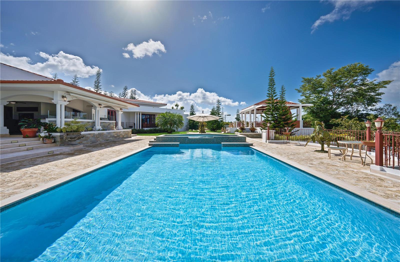 ***UNDER CONTRACT*** Elegantly positioned within the private enclave of Paseo Alto in Los Paseos, 95-96 Mirador Street spans an expansive double lot encompassing just under an acre of land. This Mediterranean-style estate stands as one of the largest private residential offerings in the community, with over 9,600 square feet of living and leisure space, thoughtfully designed for large-scale living and entertaining with privacy and presence. The main residence features approximately 8,065 interior square feet arranged across multiple wings, including 6 bedrooms, 6 full bathrooms, 3 half bathrooms, formal and informal living areas, a study, music room, and a sunlit breakfast nook. A skylit colonnade anchors the center of the home, connecting grand entertaining spaces with more intimate quarters. A detached 1-bed, 1-bath casita with gym, upper-level terrace, and covered summer kitchen add further dimension to the layout, offering flexible use for wellness, recreation, and hosting. Outdoor spaces are equally commanding. A resort-style pool is surrounded by manicured grounds, shaded patios, and an expansive BBQ pavilion. The estate also includes a private sports complex with four pickleball courts, a rare amenity that elevates both everyday living and entertaining. This is a rare opportunity to own a legacy estate with extraordinary scale, versatility, and architectural presence, offered in one of San Juan’s most discreet residential enclaves.