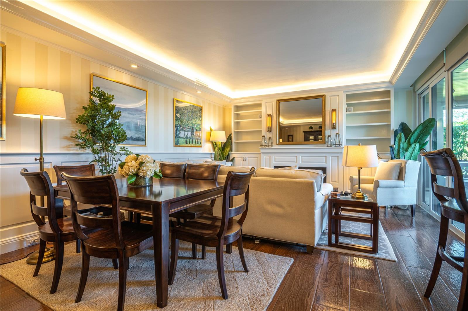 The residence showcases the highest level of craftsmanship throughout: Belgian hurricane-rated double-pane glass with Argon gas, electric storm shutters, custom cedar wainscoting, millwork, built-ins, and trim, Farrow & Ball wallpaper accents, and ceilings ranging from 9–10’ with Level 4 and 5 finishes. All interior doors are custom solid cedar, 8’ high, with Italian magnetic retractable hardware.
