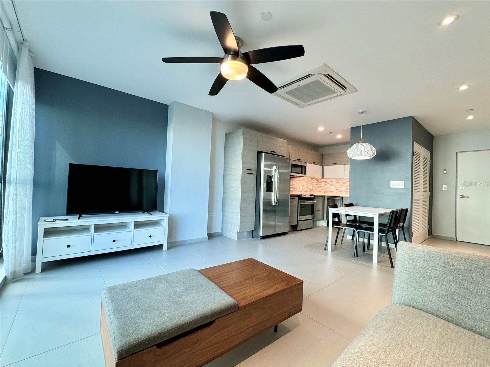 Elegant one-bedroom residence located on the 4th floor of Tower 7 at Ciudadela. This refined apartment offers a walk-in closet and tastefully upgraded kitchen and bathroom finishes. The modern kitchen is fully equipped with a dishwasher, refrigerator, stove, and microwave. The unit also features a washer and dryer combo, water heater, and two central air conditioning units.