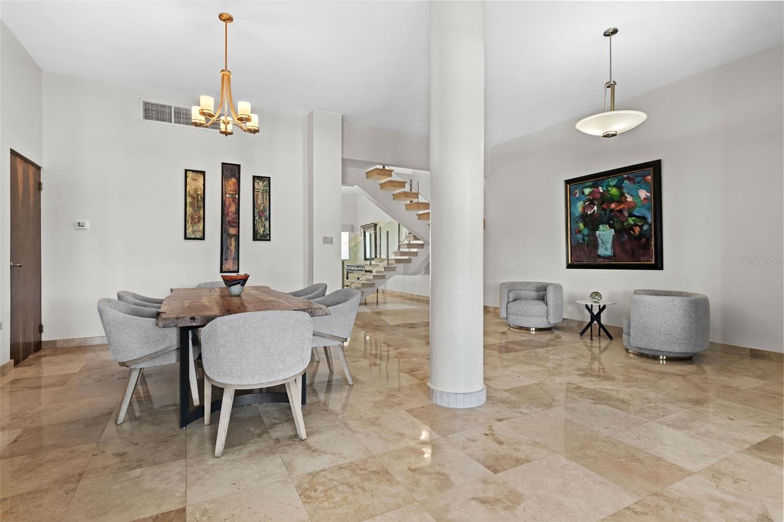 The residence features 4 generously sized bedrooms, 3 full bathrooms, and a half bath. Elegant marble floors flow throughout, creating a refined and timeless interior. The oversized primary suite serves as a private retreat, complete with a spacious en-suite bath designed for relaxation.