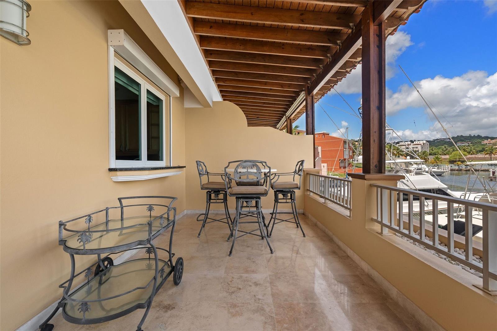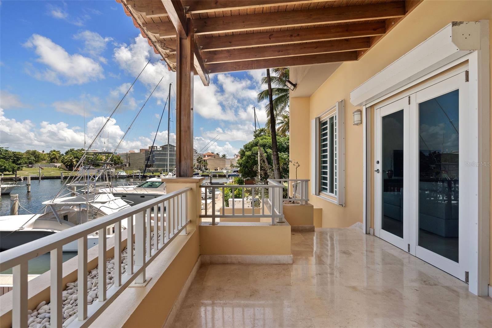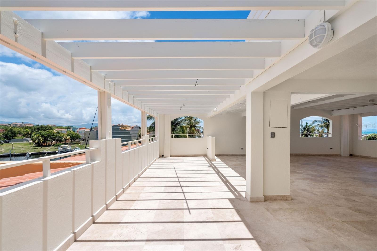 Designed with outdoor living in mind, the home includes a large entertainment area with its own full bath and a spectacular rooftop terrace offering panoramic marina views, ideal for gatherings or quiet evenings at home.
