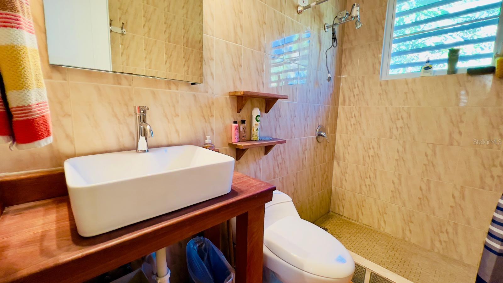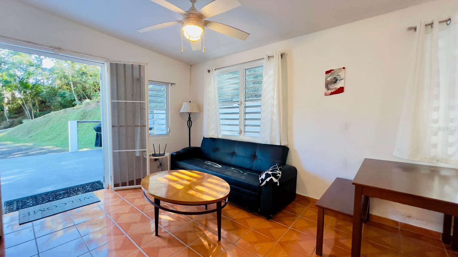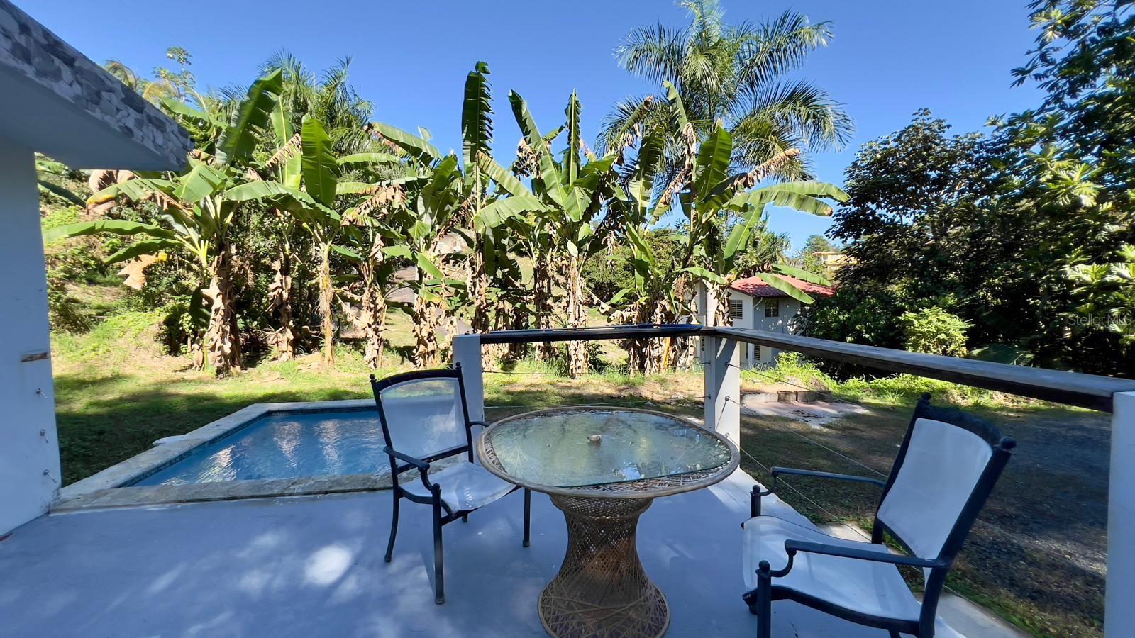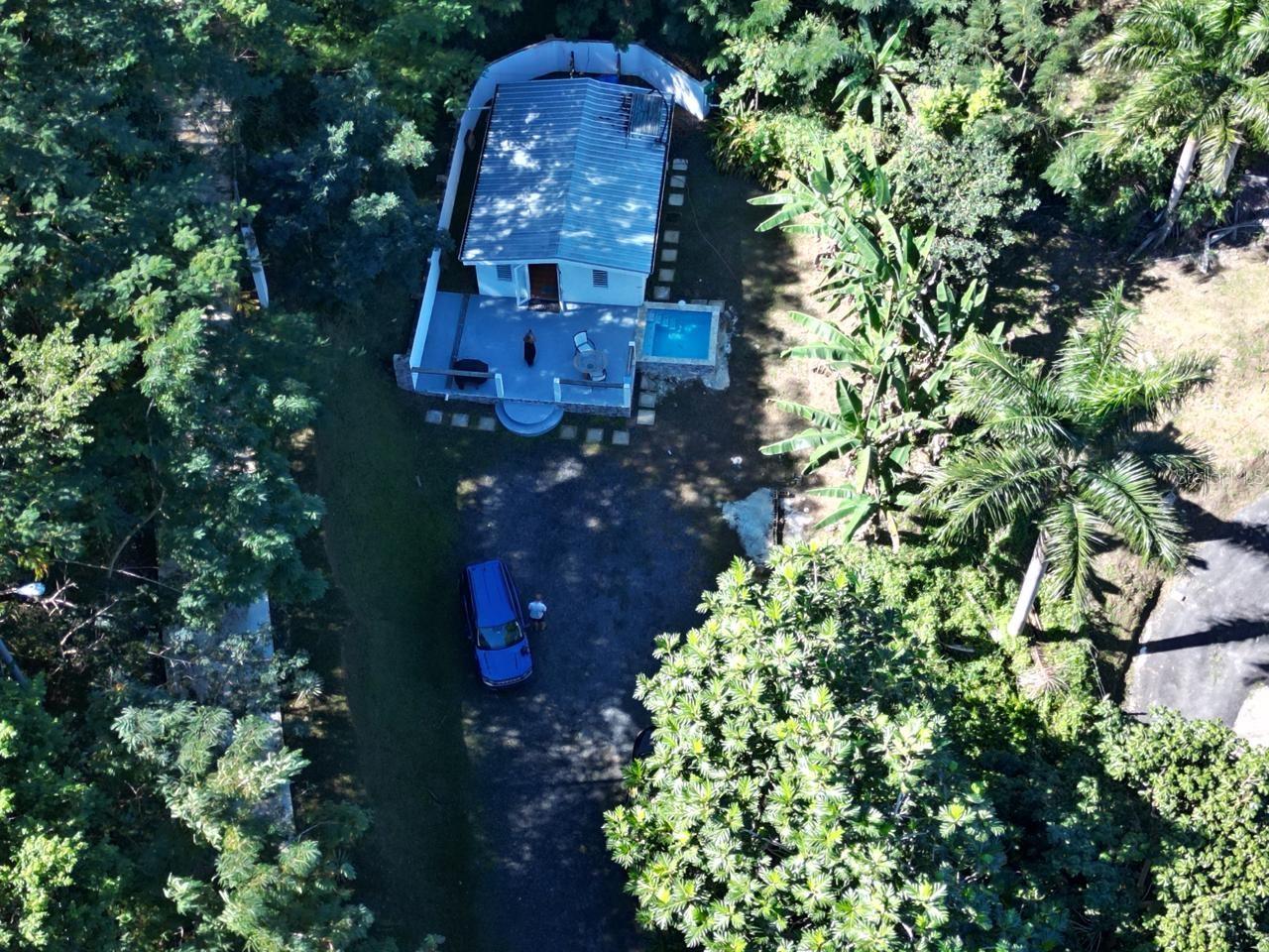 Tucked away at the end of a quiet dead-end street, this charming 2-bedroom, 1-bath home sits on a spacious 2,284-square-meter lot surrounded by lush tropical landscaping, fruit trees and palm trees, offering privacy and a peaceful island lifestyle. Located in Bo. Río Grande, Rincón, it is just minutes from beautiful beaches, popular restaurants, and the vibrant town center—perfectly balancing tranquility and convenience. The home is connected to the electrical grid and fully wired with a panel ready for generator or solar integration. Water security includes two 525-gallon cisterns with filtration, rainwater collection, and town water connection. A rooftop solar system provides hot water. Enjoy a newly built plunge pool and ample land with potential to add more casitas or a the house of your dreams.