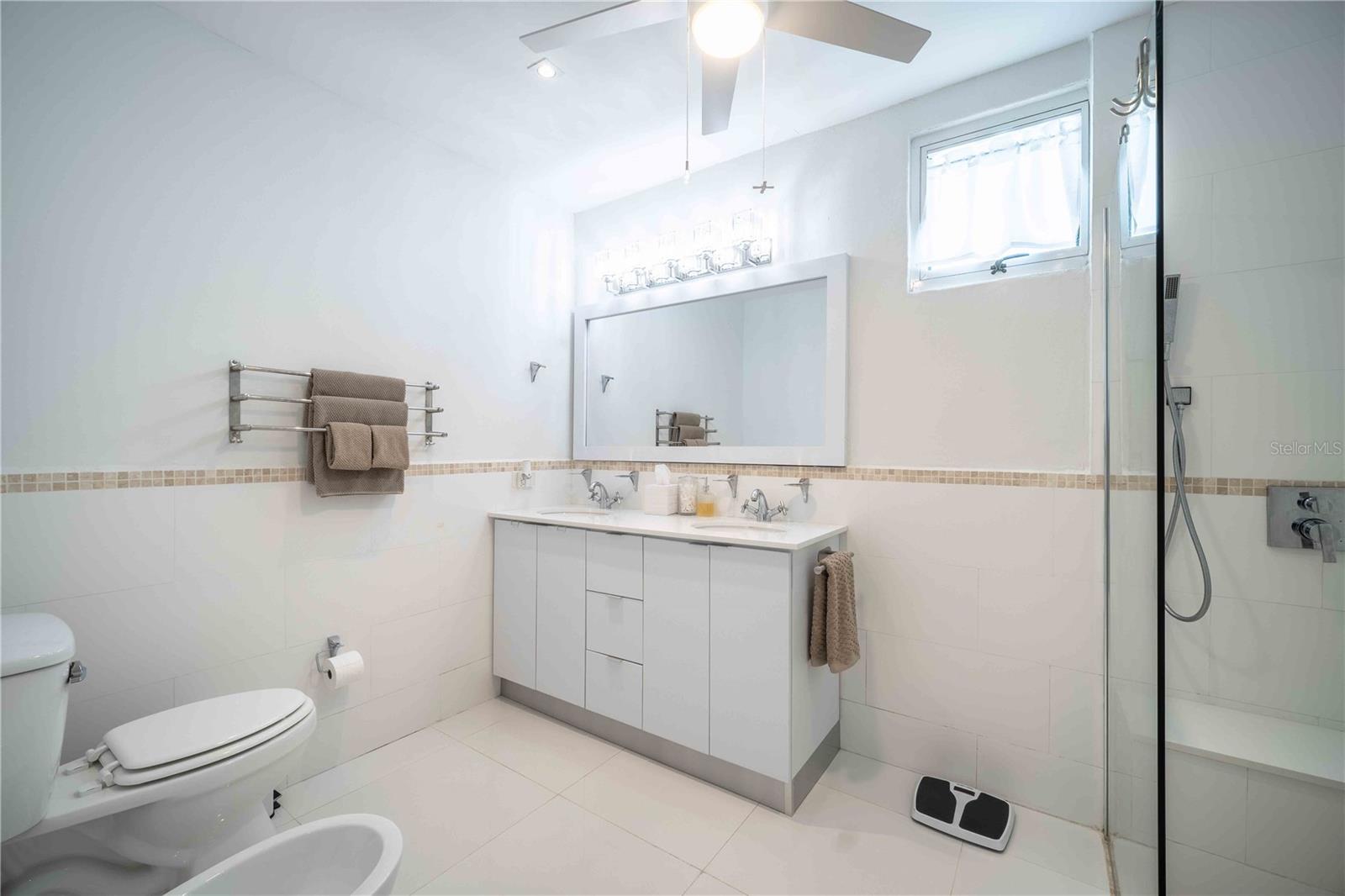 The unit showcases new floor tiles, a fully remodeled kitchen and bathrooms, recessed lighting, aluminum sliding doors with mirrors, and ceiling fans in both the living room and patio, creating a bright and modern ambiance. The private outdoor patio is ideal for entertaining and includes a BBQ area, perfect for enjoying the Caribbean lifestyle.