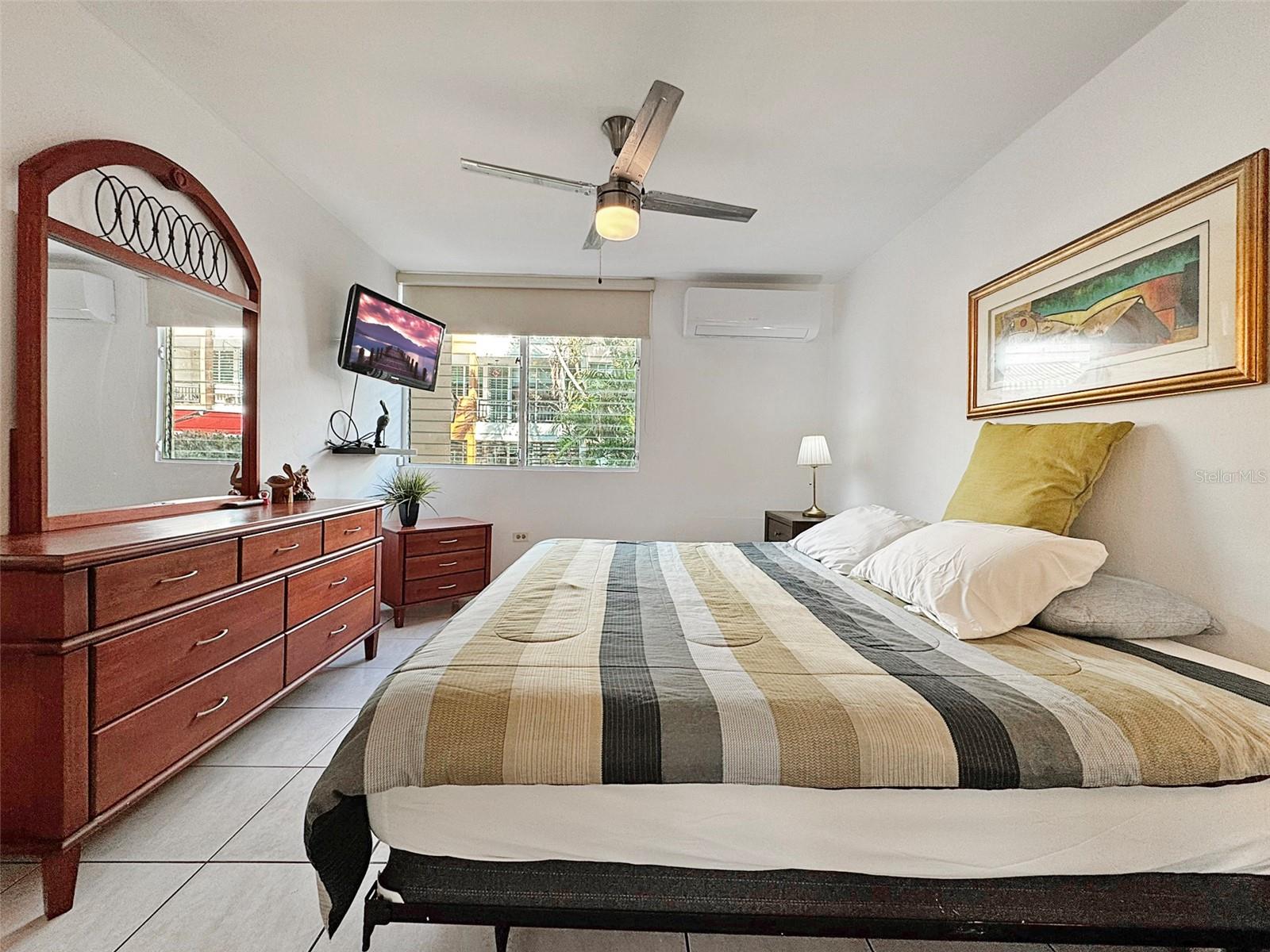 The apartment is fully furnished and equipped, thoughtfully curated for immediate, effortless living. The primary suite serves as a quiet sanctuary, enhanced by split air conditioning, while the additional bedrooms adapt beautifully for family living, guests, or a refined home office. Two assigned parking spaces complete the residence.