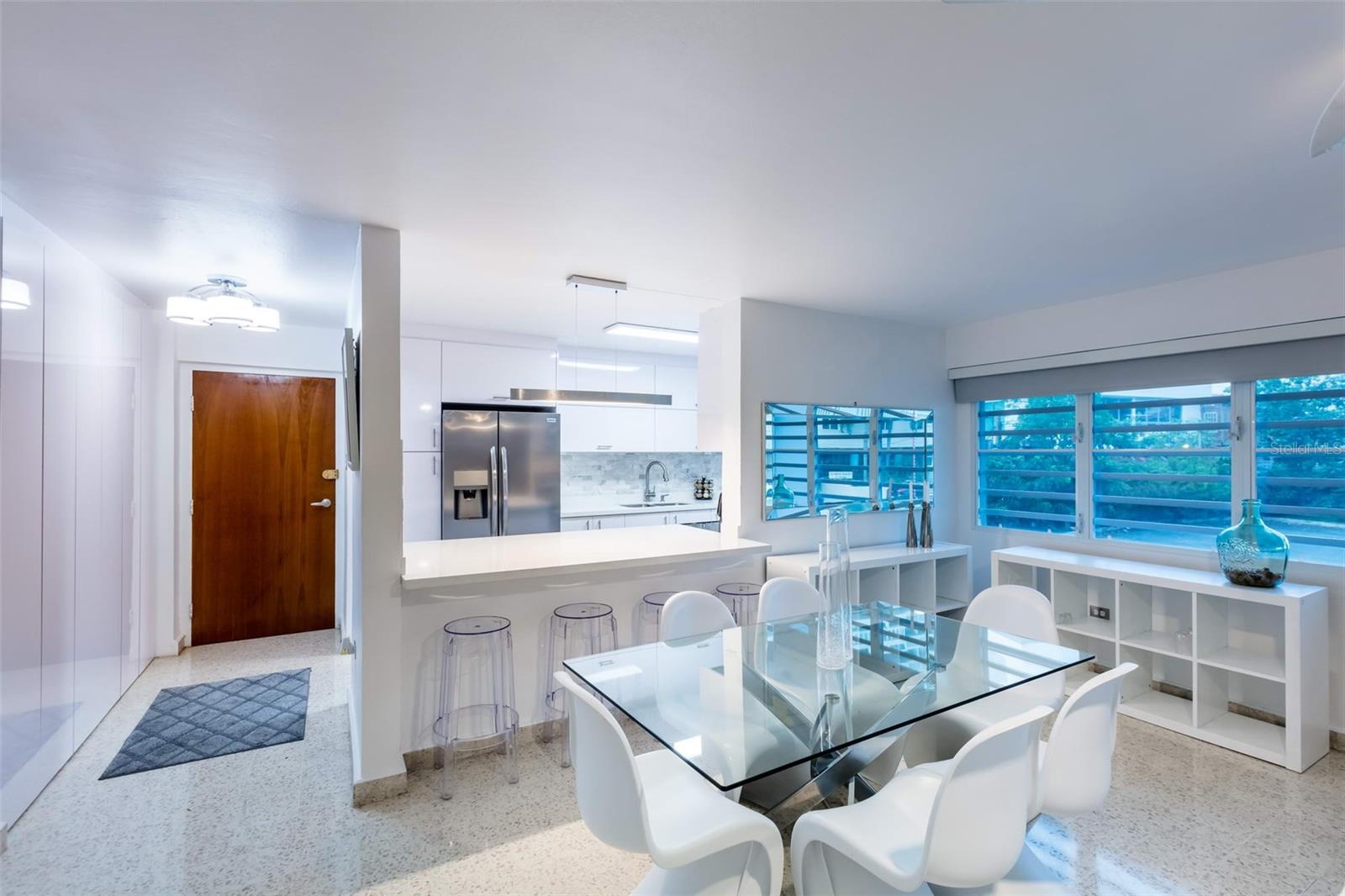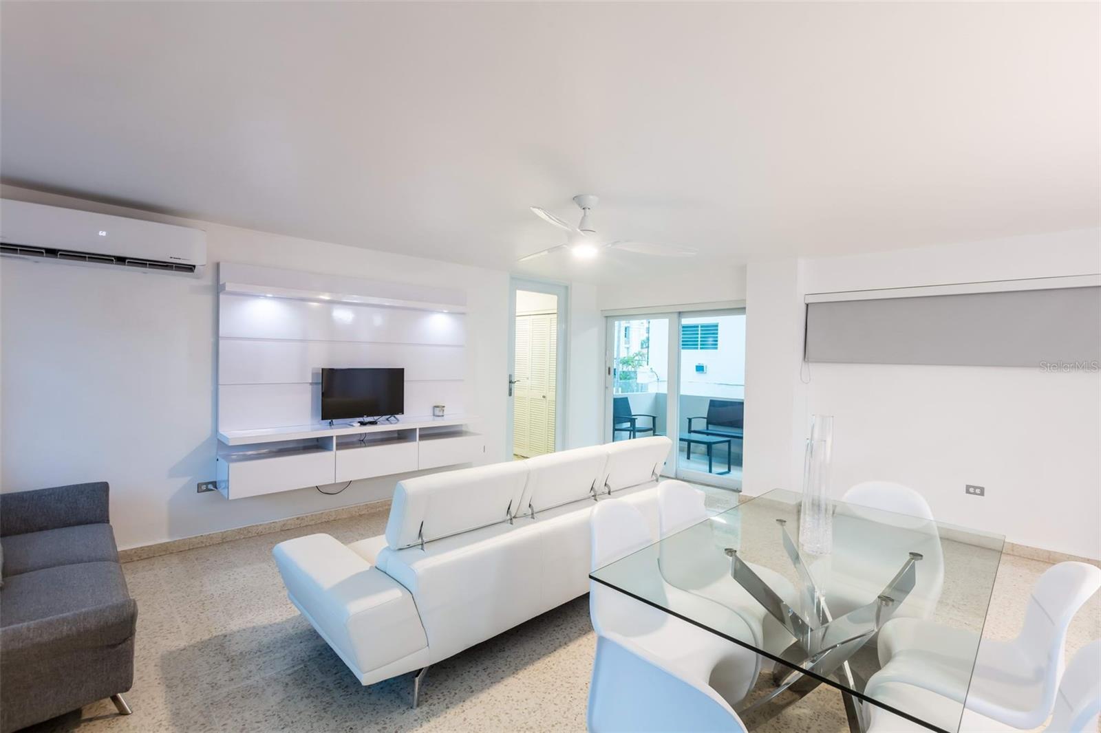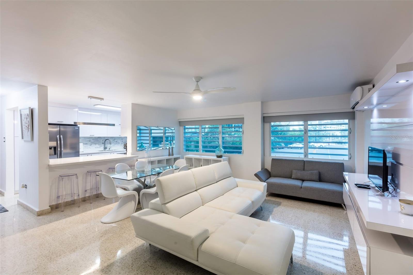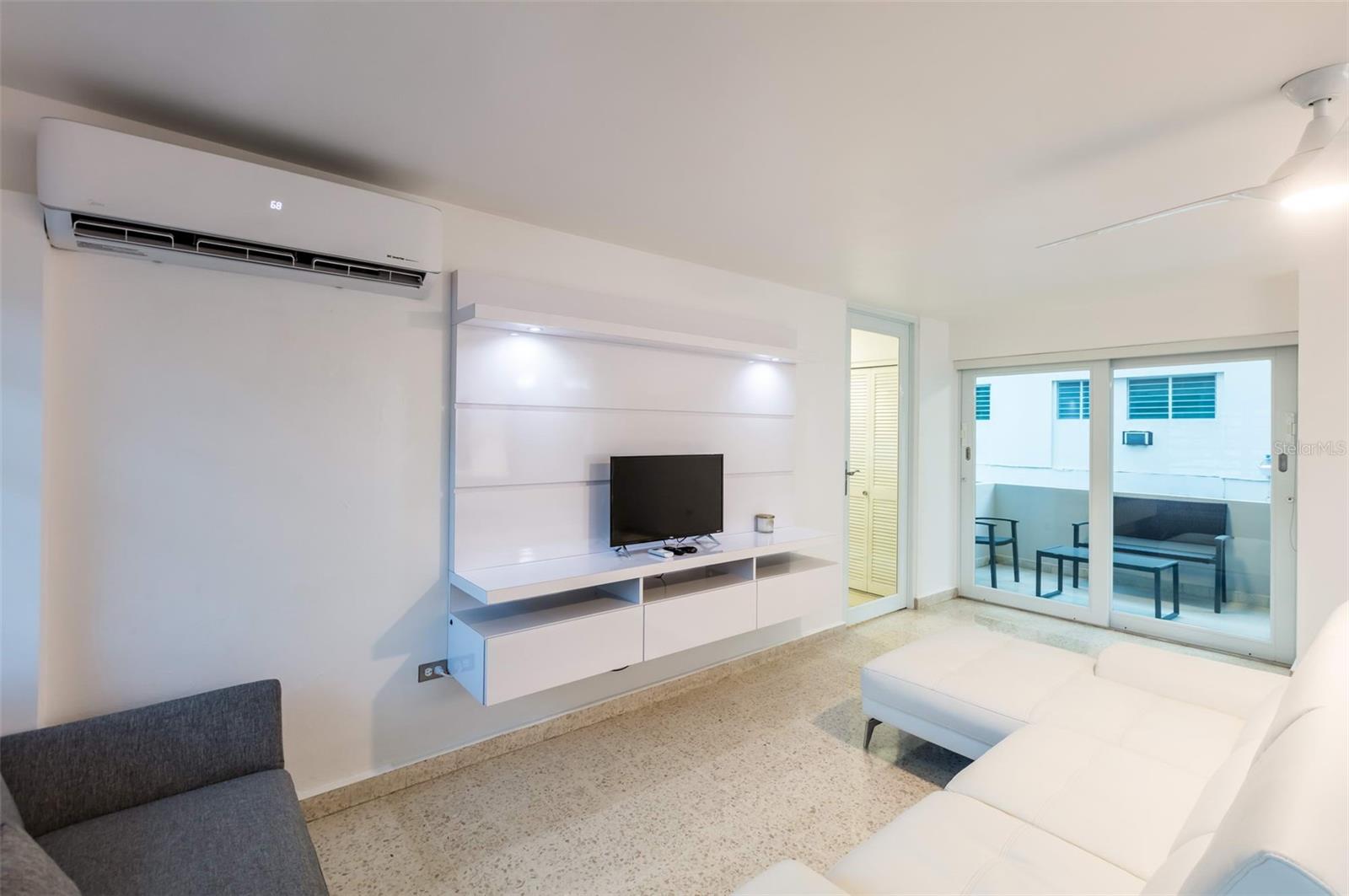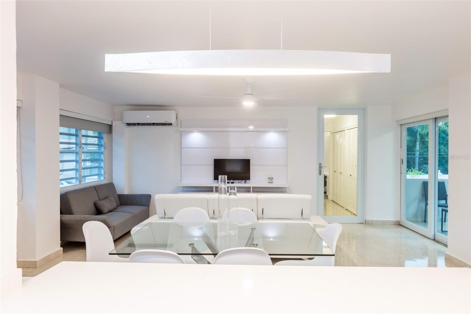 A handsome and modern apartment that showcases a comprehensive renovation, and all furniture, appliances and equipment; including inverter A/C units in the living-dining room and bedrooms.