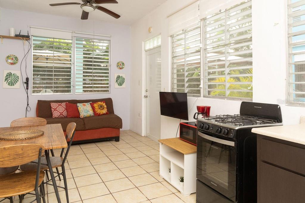 This upper-level apartment offers incredible flexibility—it may continue as guest accommodations or be transformed into a beautiful private owner’s residence. With a spacious living area, 5 bedrooms, 4 bathrooms, and a full kitchen, the layout allows for creative redesign, such as creating a luxurious primary suite, expanding living spaces, or enhancing finishes while preserving its authentic Puerto Rican character. Its elevated position provides privacy while remaining connected to the energy of Isabel II below, making it ideal for a live-work lifestyle.