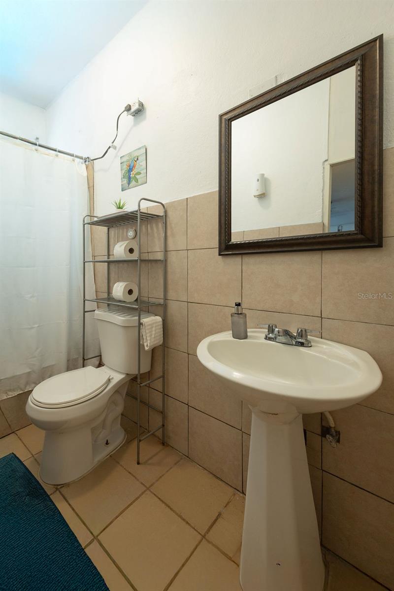 Building One fronts the street and includes a street-level storefront with its own bathroom, currently operating as a gift shop. With excellent foot traffic and visibility, this space could easily be reimagined as a café or restaurant. Below, a basement level provides ample storage. Above the storefront is a generously sized apartment showcasing traditional Puerto Rican architectural details, including decorative rejas (ironwork), ceramic motif tiles, and a welcoming balcony overlooking the town activity.