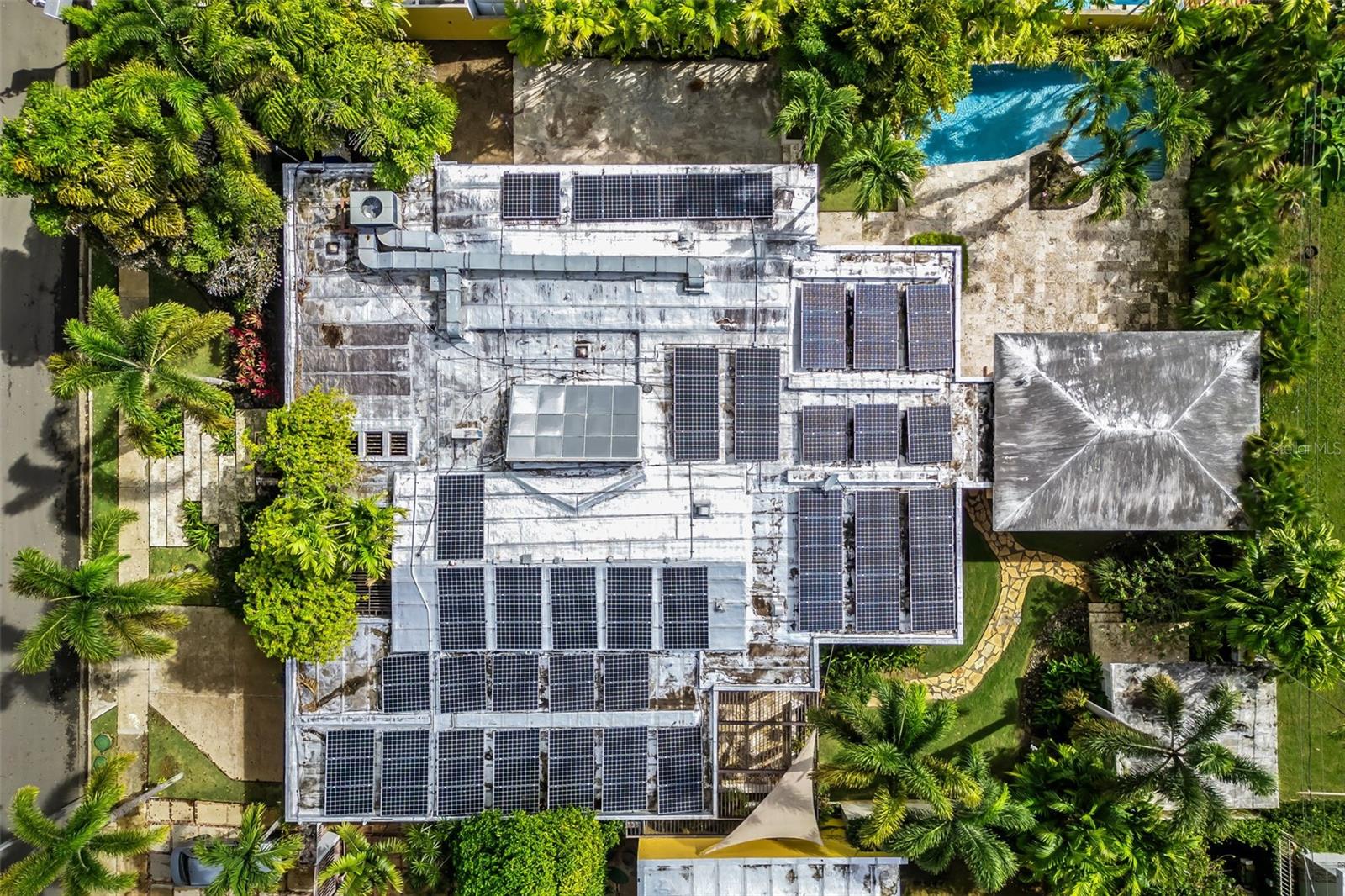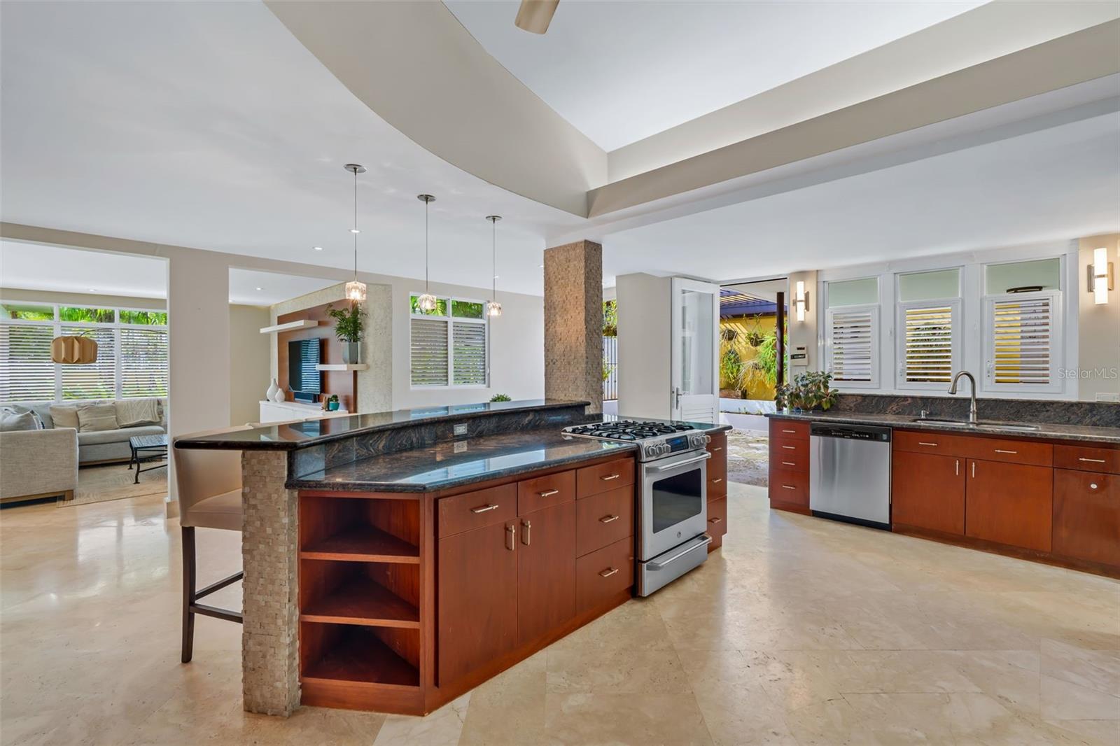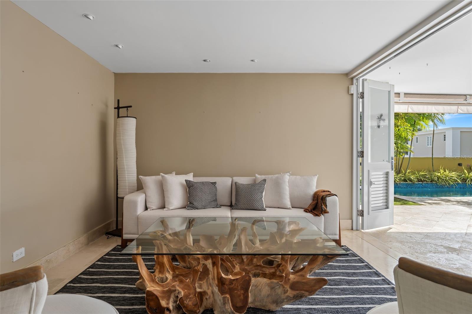 Upon entry, the brilliance of the marble floors reflects the abundant natural light guiding your view toward the breathtaking backyard. The outdoor area is truly captivating, featuring three terraces, a swimming pool, a small basketball court, and an additional detached structure complete with a full bathroom and shower; ideal for a home office, studio, guest suite, or flexible living space.