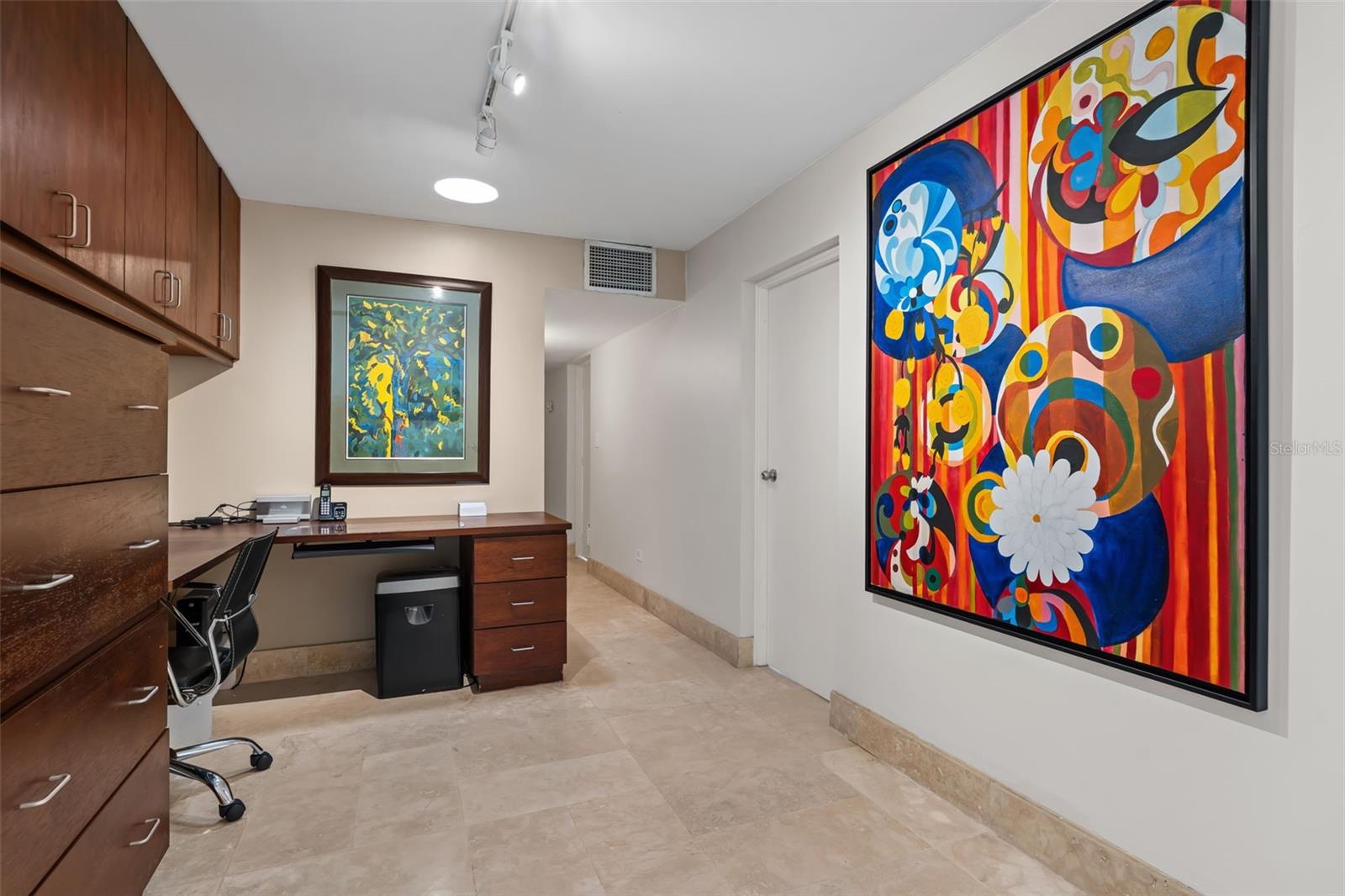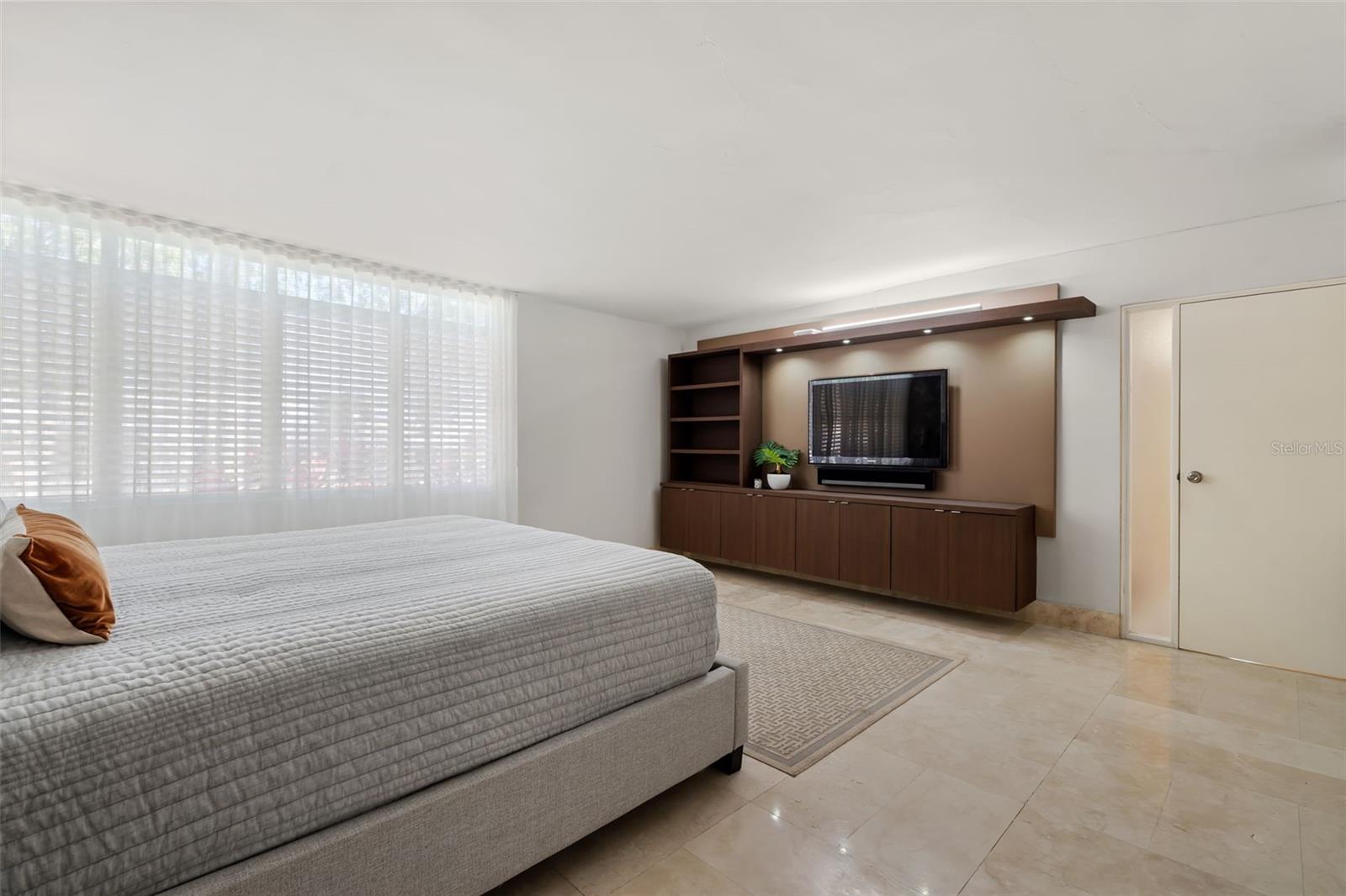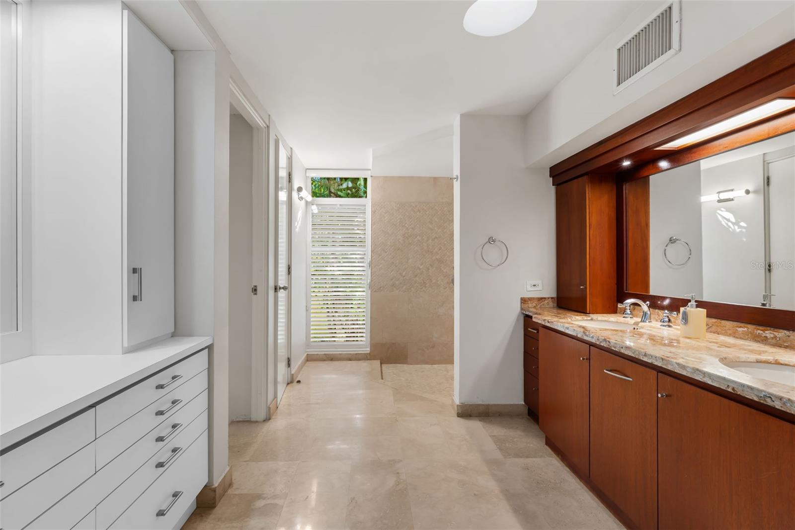 The residence offers four bedrooms and a thoughtfully designed layout. As you enter the bedroom wing, you’ll find a convenient office area. The first bedroom is an en-suite, followed by two additional bedrooms—one with direct access to the hallway bathroom. The master bedroom is a private retreat featuring a spacious walk-in closet, a modern open shower, and a separate, independent bathroom.