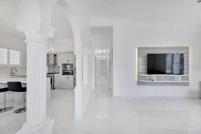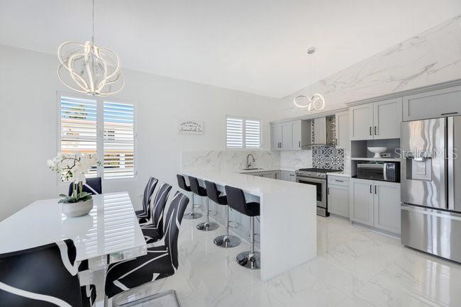 Step inside to find a beautifully remodeled interior featuring an open-concept kitchen, living, and dining area—perfect for entertaining or spending quality time with family and friends. The kitchen shines with brand-new cabinetry, modern appliances, and stylish tile flooring that flows throughout the entire home.
