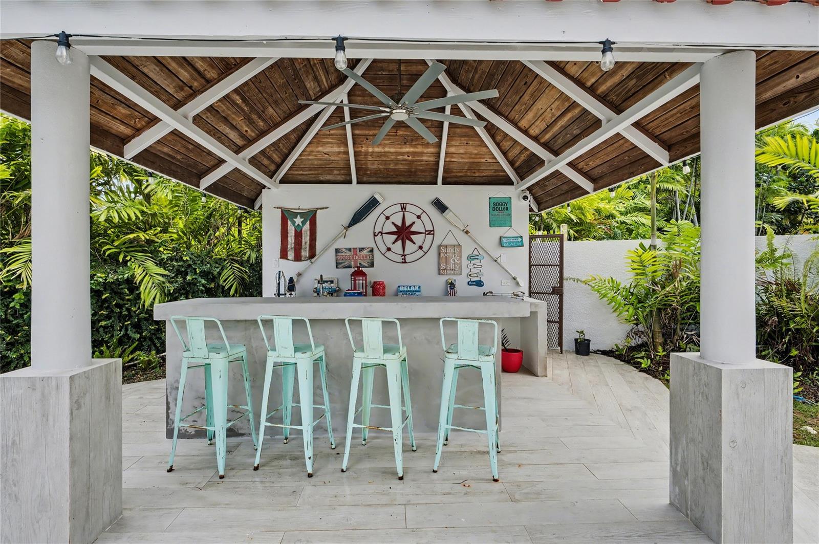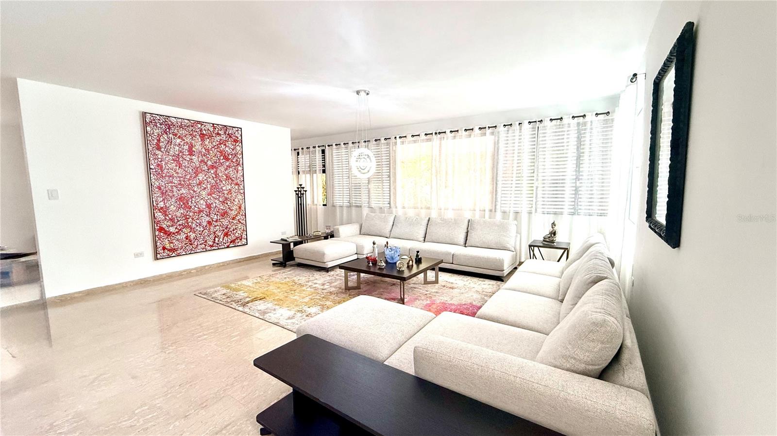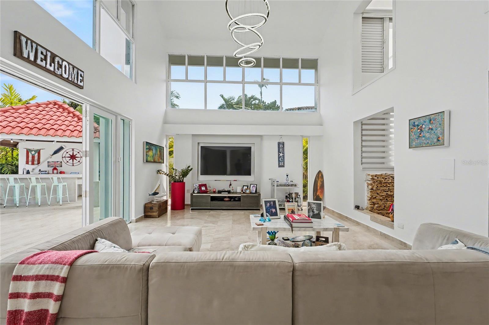 Enjoy living in this one-of-a-kind elegant residence nestled within the exclusive gated community of Santa Maria, one of the most sought-after secure enclaves within the San Juan metro area. Experience the best of two worlds at this home thoughtfully designed for large-scale living and entertaining with great presence and privacy, yet this home is also an oasis of tranquility, while being conveniently situated only about 6-8 miles from the city, Old San Juan and the beach. Spanning a grand total area of 6,250 sq.ft., this residence is designed with every detail in mind to feel like your private retreat featuring four oversized bedroom suites, each with an ensuite bathroom, in addition to a guest bedroom or office/flex room with another ensuite bath in the first floor. The house has an elegant formal living area next to a grand dining room, a modern open kitchen opening up into a Great room or family area with majestic double height cathedral ceilings all leading through tall glass doors into the terrace and outdoors. The home is a mini resort with a large fully equipped gym and an ensuite bath, a large covered terrace, a complete gazebo with a wet bar, a pool with a large jacuzzi, an outdoor full bath making this house also one for great entertaining. To complete it all, the home boasts an oversized laundry room, another large terrace on the second floor, several storage areas, 3 separate garages that can accommodate 4-5 cars, a 20kw diesel generator and 2 cisterns, electric hurracaine shutters, fiber optics, alarm, and cameras with a security system.