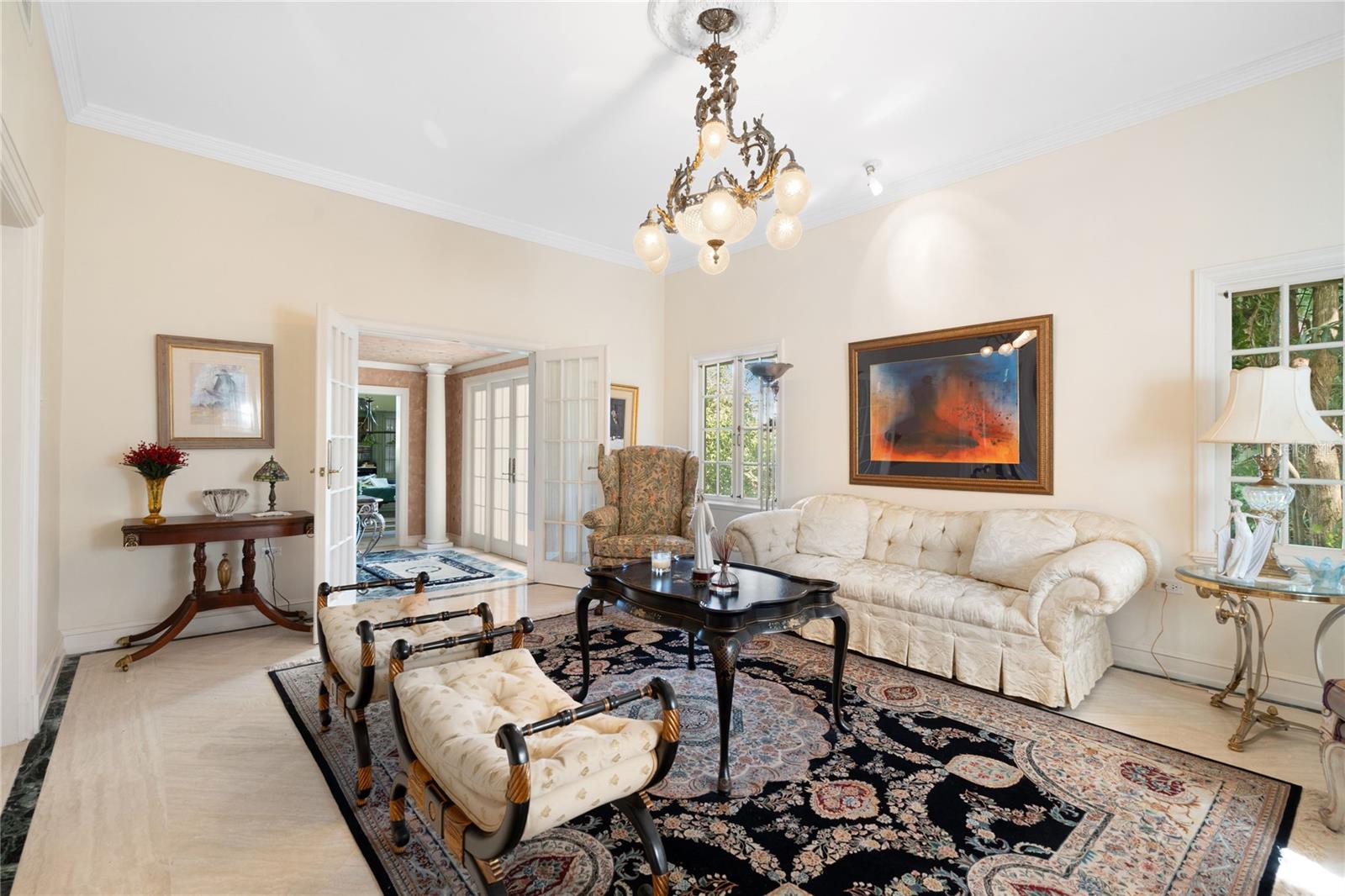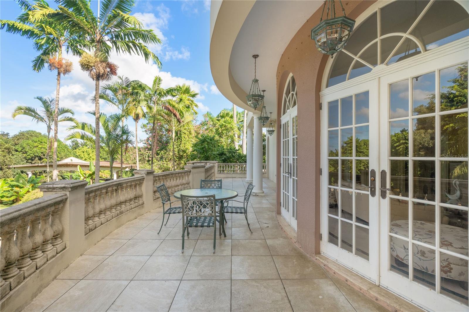 Located within the exclusive gated community of Tintillo Hills, this timeless custom-built residence offers privacy, scale, and refined living on an expansive 2.5-acre lot. The four-level estate features 11,415.24 sq ft of total construction, designed for both grand entertaining and comfortable full-time living. The main level welcomes you with a grand foyer featuring soaring ceilings and a curved staircase, filled with natural light. This level includes formal living and dining rooms, a spacious kitchen with breakfast area, family room, and a versatile billiard room. Expansive open terraces and covered porches connect the interiors to the surrounding gardens and pool, creating seamless indoor-outdoor living. The lower level offers exceptional amenities including a gym, sauna, wine cellar, full bathroom, maid’s room with en-suite bath, laundry area, extensive storage, and a three-car garage. Outdoor features include a pool, concrete terrace, manicured gardens, and a detached wood terrace with outdoor kitchen—ideal for entertaining. The second floor features four bedrooms and a family room. The primary suite includes a spa-like bathroom, dual walk-in closets, and a private balcony overlooking the pool and gardens. Additional bedrooms offer full bathrooms and walk-in closets. The third floor hosts a private office or library accessed by a spiral staircase, opening to a balcony with panoramic views extending to Old San Juan. The estate is accessed through a private gated entrance with circular driveway and includes mature trees, expansive green areas, and a tennis court ready for renovation. The property is fully equipped with an industrial backup generator and a large-capacity water cistern, ensuring uninterrupted comfort and peace of mind. Adding a unique touch of countryside charm, the grounds also feature resident chickens, embodying the essence of campo en la ciudad—country living with city convenience.