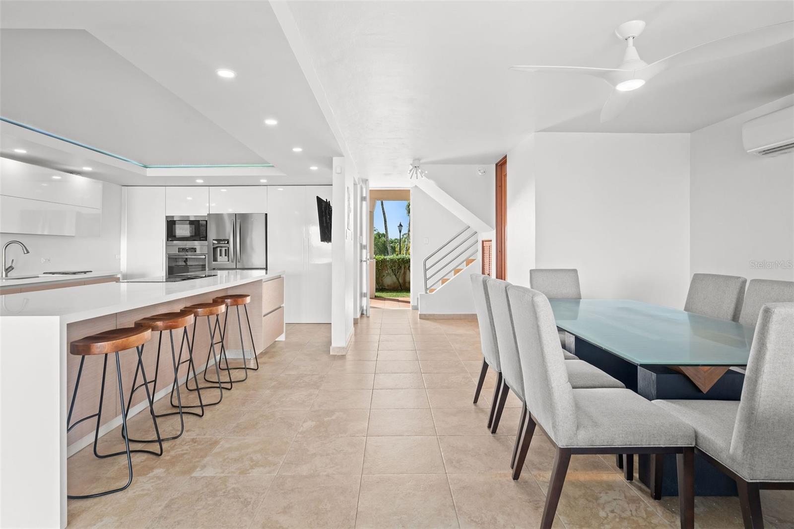 Stunning 2-story, corner garden residence at Costa Dorada within Dorado del Mar community. This renovated two-story condo combines comfort, privacy, and panoramic ocean views in a setting designed for effortless resort living. Featuring 3 bedrooms, 2.5 baths, and 1,952.69 sqft of interior space, the home has been thoughtfully renovated to highlight light, views, and seamless indoor-outdoor living. The open floor plan connects the living, dining, and kitchen areas, ensuring the ocean is always in view. Sliding doors lead to outdoor spaces that invite sea breezes and stunning sunsets indoors. The modern kitchen features high-end stainless steel appliances, sleek finishes, and ample space for gatherings. Additional highlights include remodeled bathrooms, 2 assigned parking spaces, and direct access to landscaped garden areas leading toward the shoreline. Residents of Dorado del Mar enjoy proximity to beaches, dining, golf, fitness facilities, and resort-style amenities, all within one of Puerto Rico’s most established coastal communities.