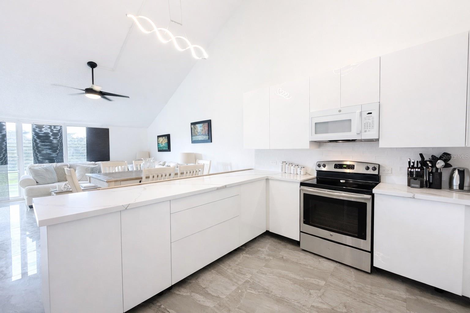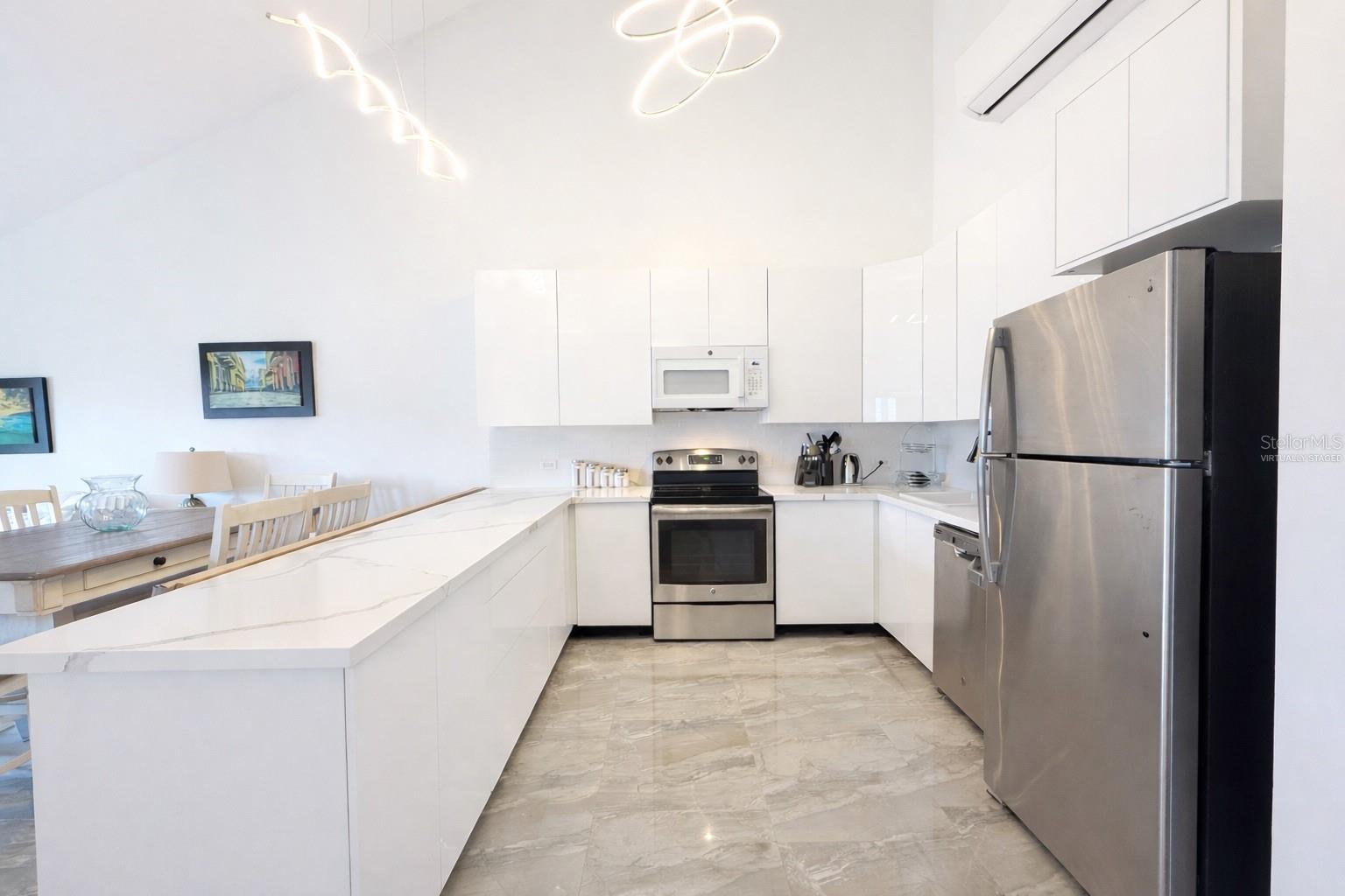A standout feature of the home is the recently reconfigured and fully remodeled kitchen, designed to enhance both functionality and flow. It now includes a sizeable central island, expanded storage, and a layout well suited for everyday living and entertaining. The interior maintains a cohesive modern design with bright, open spaces and a primary bedroom with an en-suite bathroom that provides comfort and privacy.