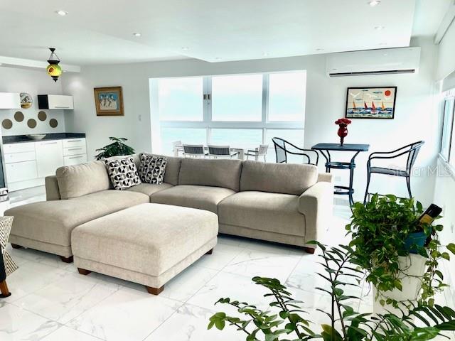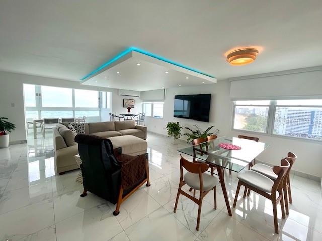 One of a Kind apartment. Ocean front , super spacious , completely remodeled , equipped and furnished with a very good taste. Beautiful ceilings jobs in kitchen and living areas. Includes closed balcony area, big living/dining area, kitchen, dry bar, laundry room , office , studio / dresser room, one guest bedroom , one super spacious primary bedroom that has a balcony and walking closet. Both bathrooms are very ample and confortable with a lot of extra space. All kitchen appliances are stainless steel. The property has 2200 square feet approximately and includes two parking spaces , 24 hours security, swimming poll, direct access to the Isla Verde Beach consider as one of the best metropolitan beaches in the world. Excellent location across the street to supermarket and walking distance to several restaurants. Easy access to the 26 highway. Must see!!