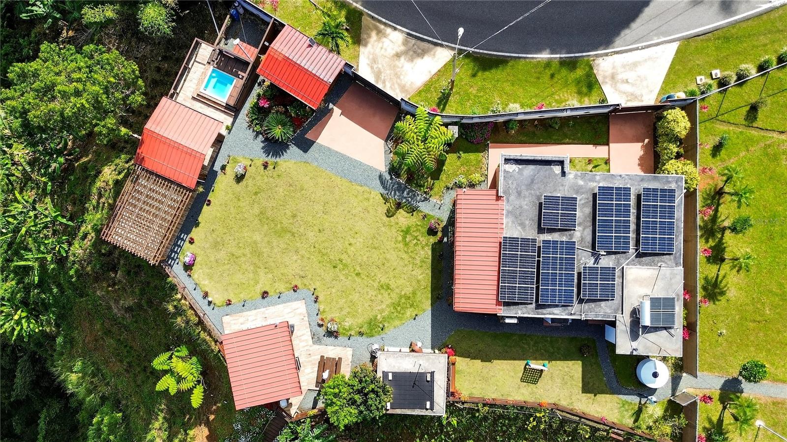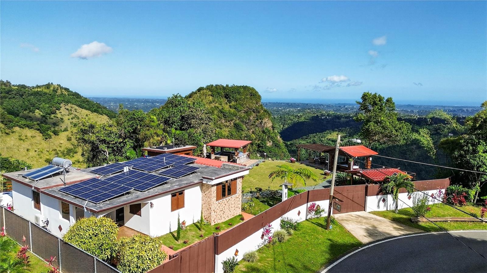 Perched on the mountaintop, 2,200 ft above sea level, this cement lodge delivers true off-grid living. Powered by solar and batteries, with a backup generator, and connected to water via a reusable cistern system for off-grid security; it also features fiber-optic internet. Enjoy a private pool with panoramic vistas, multiple epic viewpoints, and a signature hanging bed for sunset lounging—plus soothing river and waterfall ambiance nearby. Entertain outdoors with a second kitchen and BBQ, whole-property surround sound, and an open-air bathroom that frames the mountains. Inside: three bedrooms sleeping up to seven, a fully equipped kitchen, living room, and full bath. Sold fully furnished and turnkey. This retreat, which is among Airbnb's top 100 guest favorites, is just four minutes from a gas station, a supermarket, and a hardware store.