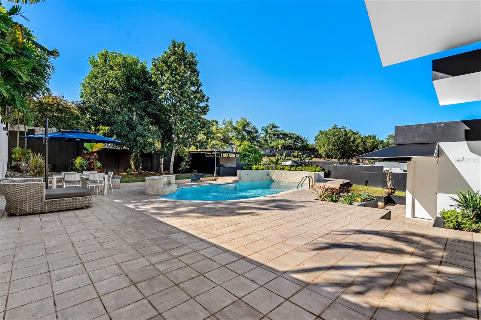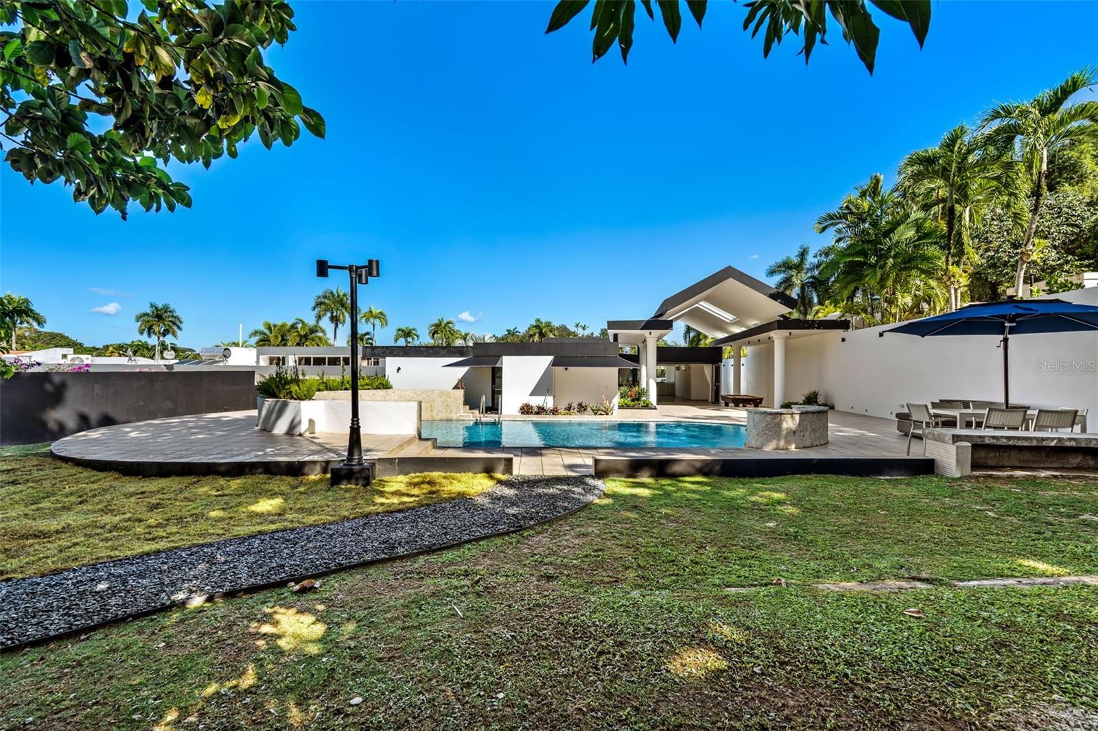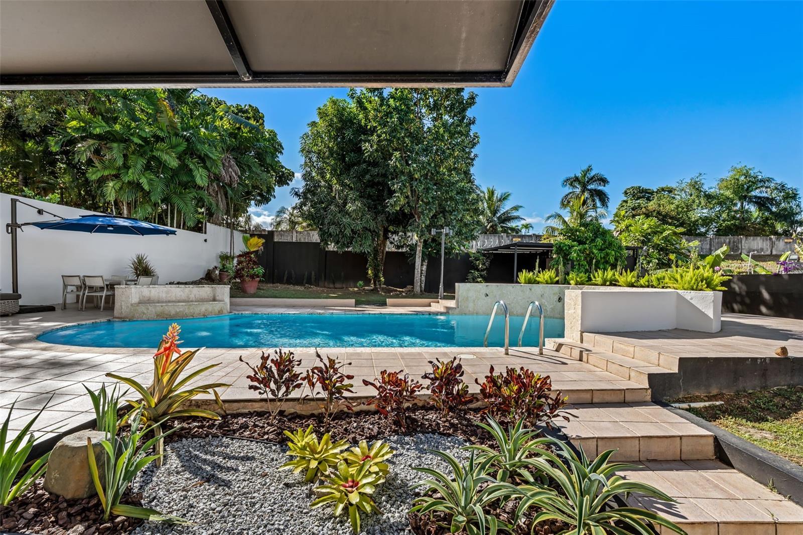 Take PR-22 West from San Juan toward Guaynabo. At kilometer 5.5, take the left exit for Buchanan and merge onto PR-2. Continue on PR-2 for approximately 1.7 kilometers, then turn right onto PR-20 toward Guaynabo. Drive south on PR-20 for about 280 meters and take the exit on the right toward Avenida González Giusti. At the intersection, turn right onto Avenida González Giusti and continue for about 210 meters. Enter the roundabout and take the southbound exit onto PR-19. Continue for approximately 500 meters, then turn right into the main entrance of Garden Hills Sur. Continue straight on Calle Del Parque for about 700 meters, then turn left onto Calle Serranía. Drive approximately 300 meters and turn left onto Calle Garden Hills Estates. After passing the gate, turn right onto Calle 2 and immediately left onto Calle 3. The property is the second to last house on the right.