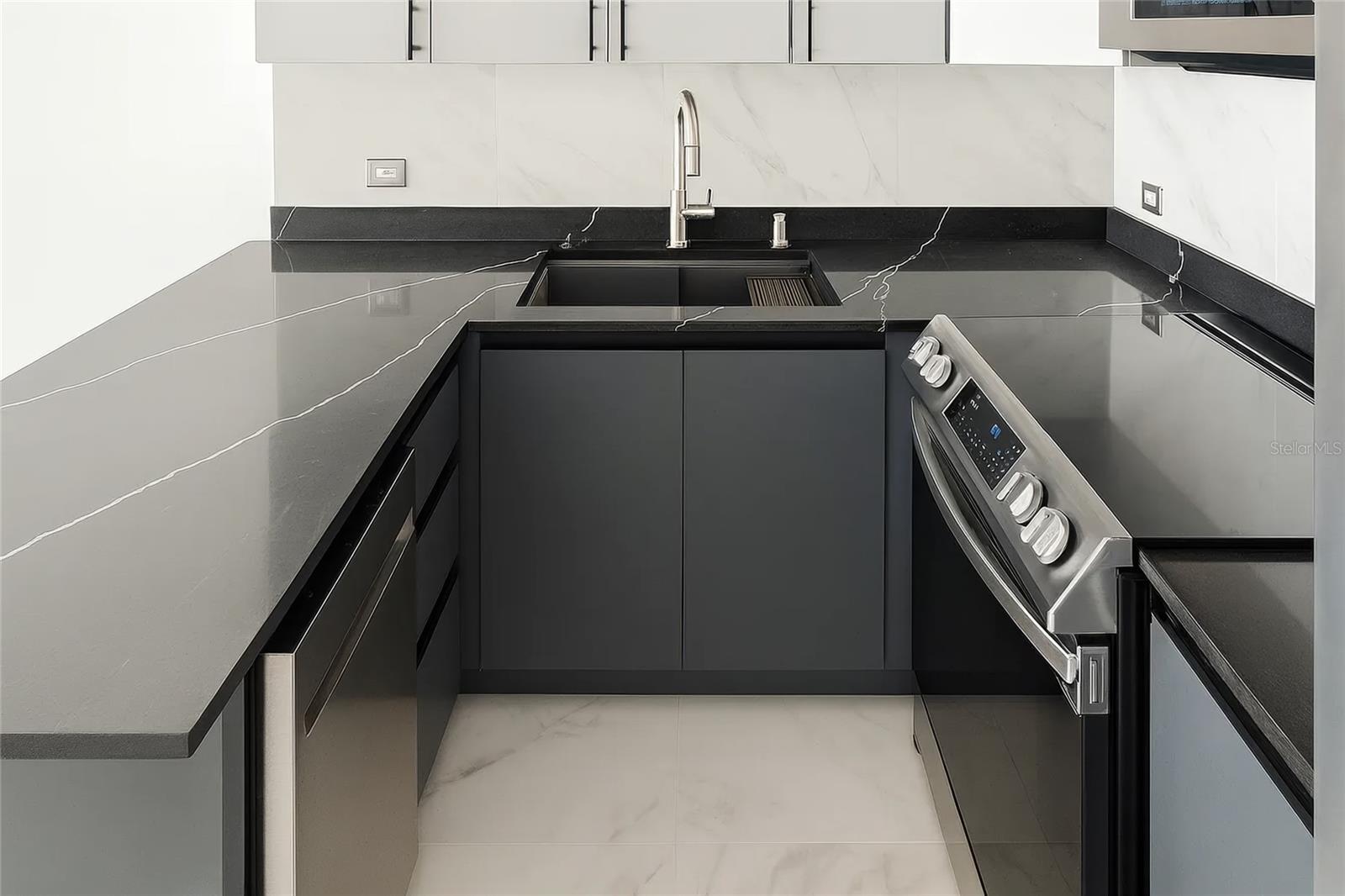 Enjoy a modern open-concept kitchen featuring premium quartz countertops, a dishwasher, and brand-new, top-of-the-line appliances. The unit includes central air conditioning with a Nest thermostat for optimal comfort and energy efficiency top of the line LG washer and dryer, induction range, microwave, dishwasher, French doors fridge with ice maker and water filtration, and a German high power water heater.