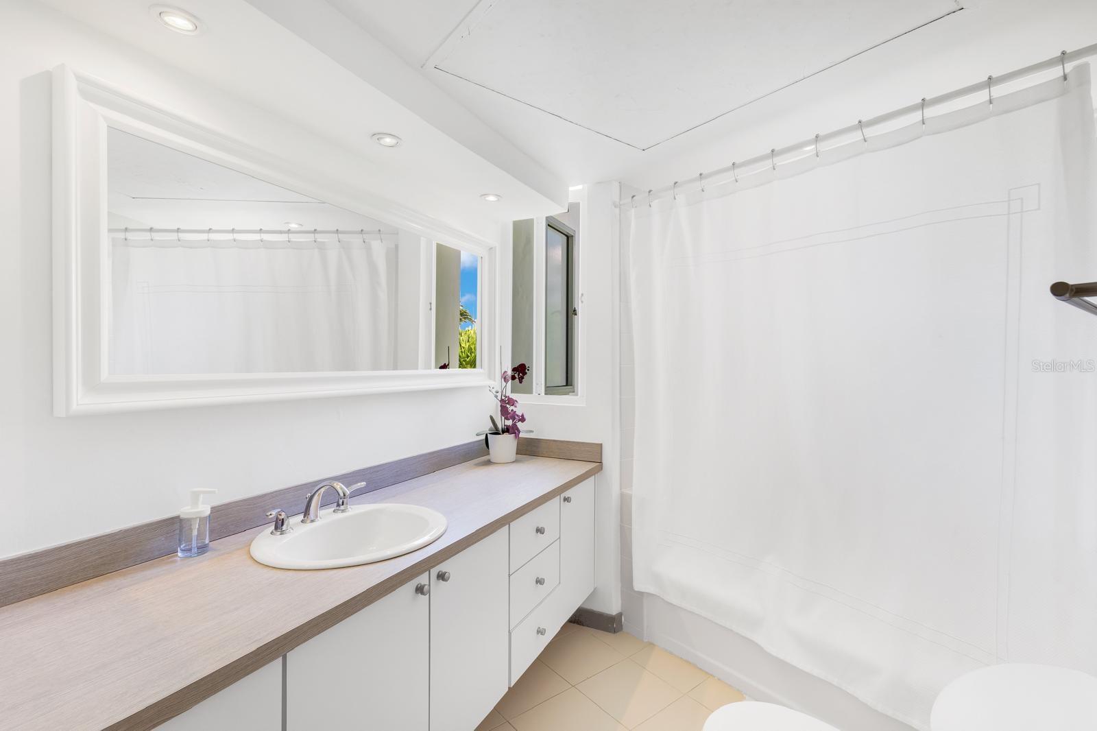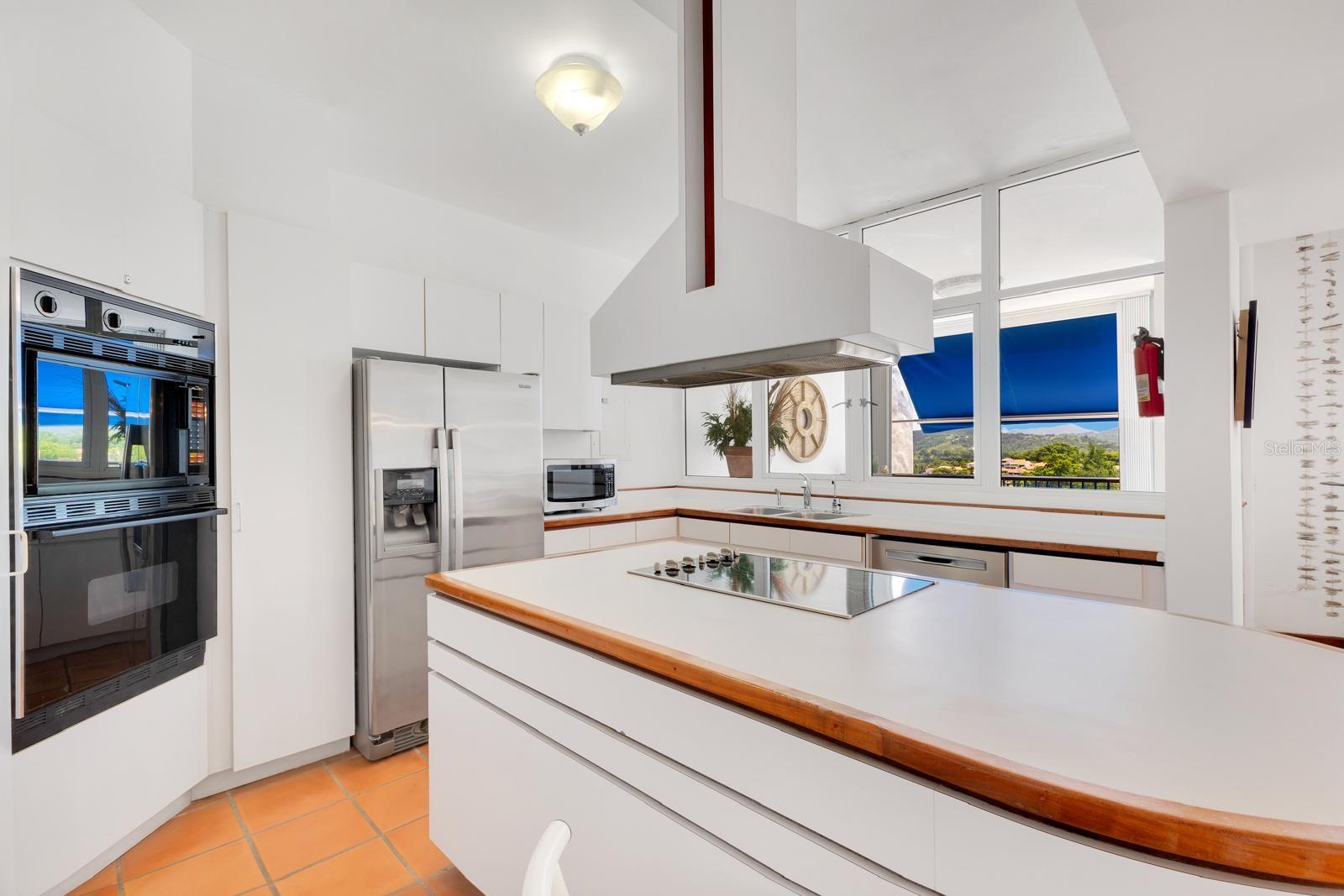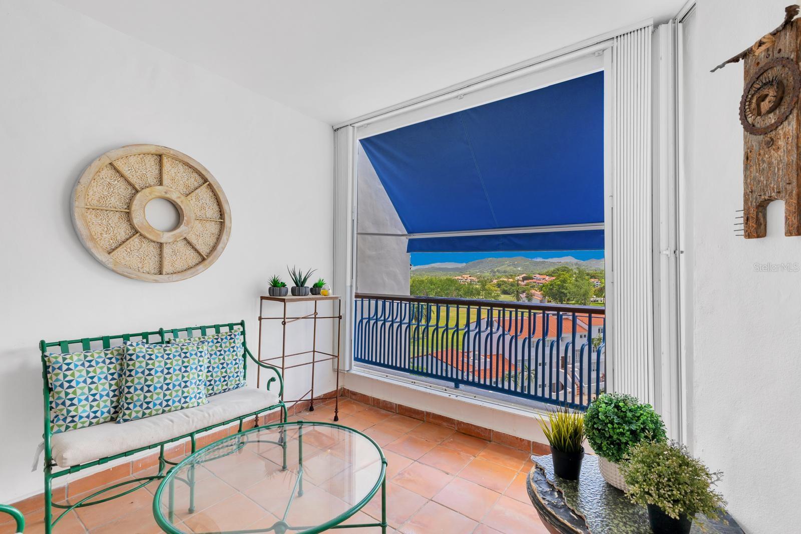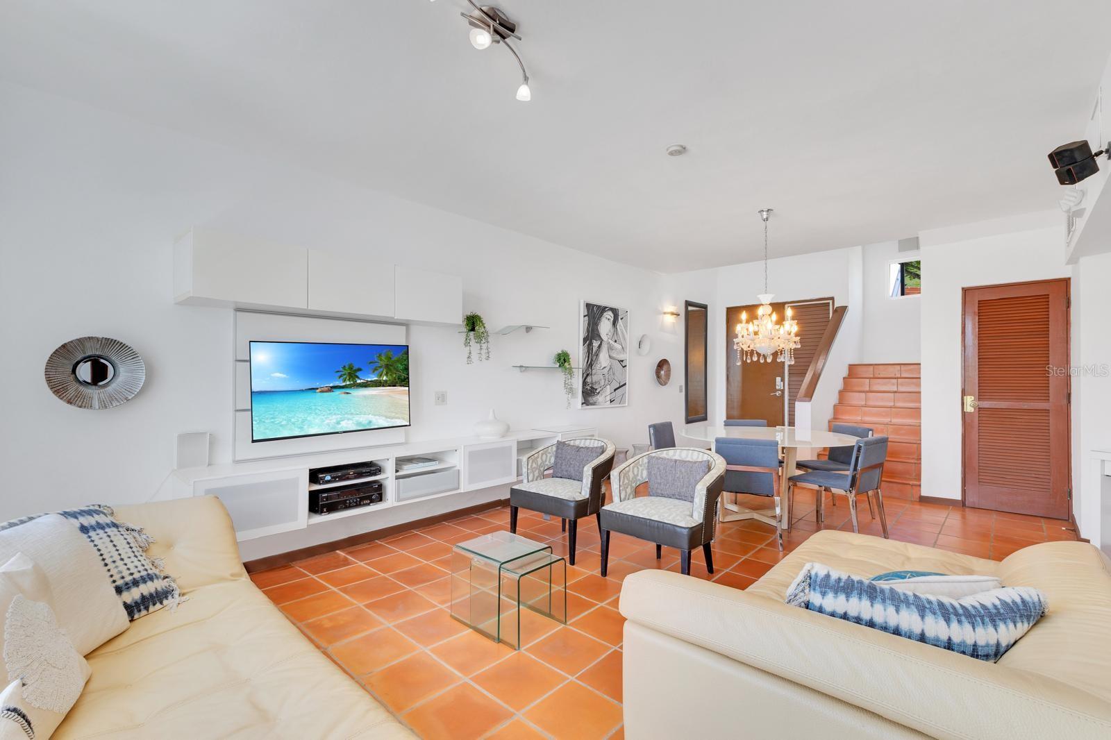The main level features an open-concept kitchen, dining, and living area that flows out to a balcony with relaxing views of the golf course, El Yunque rainforest, and the Wyndham Rio Mar resort grounds. An equipped laundry space and storage closet add everyday convenience, while 2 inverter A/C units and 1 central A/C system keep the villa cool and efficient.
