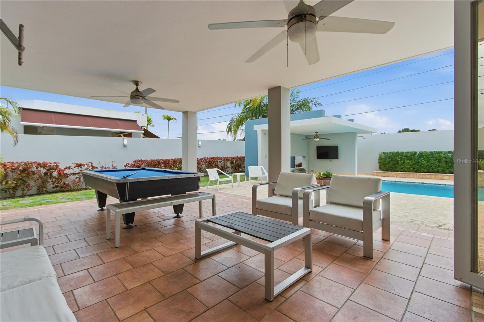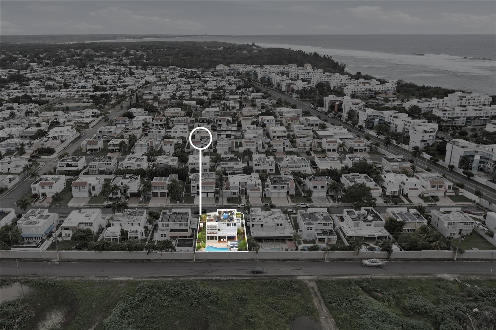 Primary residence located within the gated, family-oriented community of Villas de la Playa in Vega Baja, just a short walk from the beach. The residence is defined by a thoughtfully composed layout where expansive windows frame the pool, allowing natural light to permeate the family room and kitchen while maintaining a constant visual connection to the outdoors.