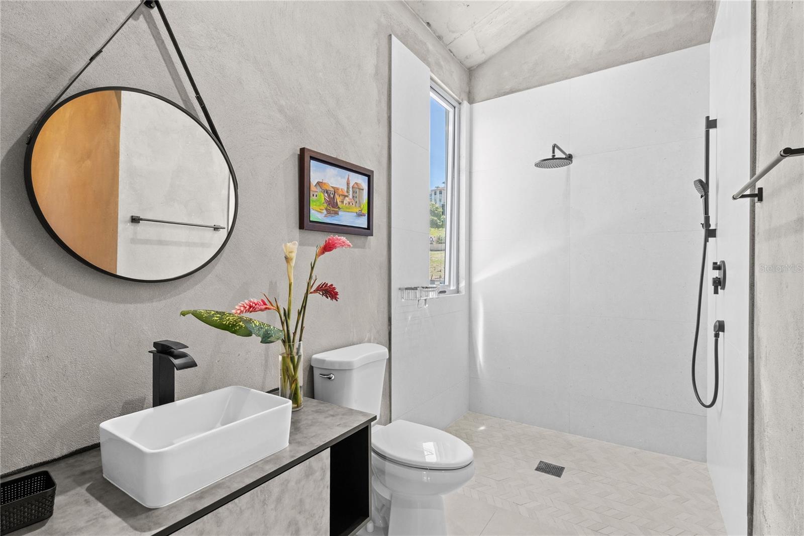 The main residence comprises three en-suite bedrooms with walk-in closets, including a primary suite of generous scale with private terrace access. A detached guest suite with an independent entrance offers flexibility for visitors, studio use, or extended stays. A full power generator provides uninterrupted functionality.