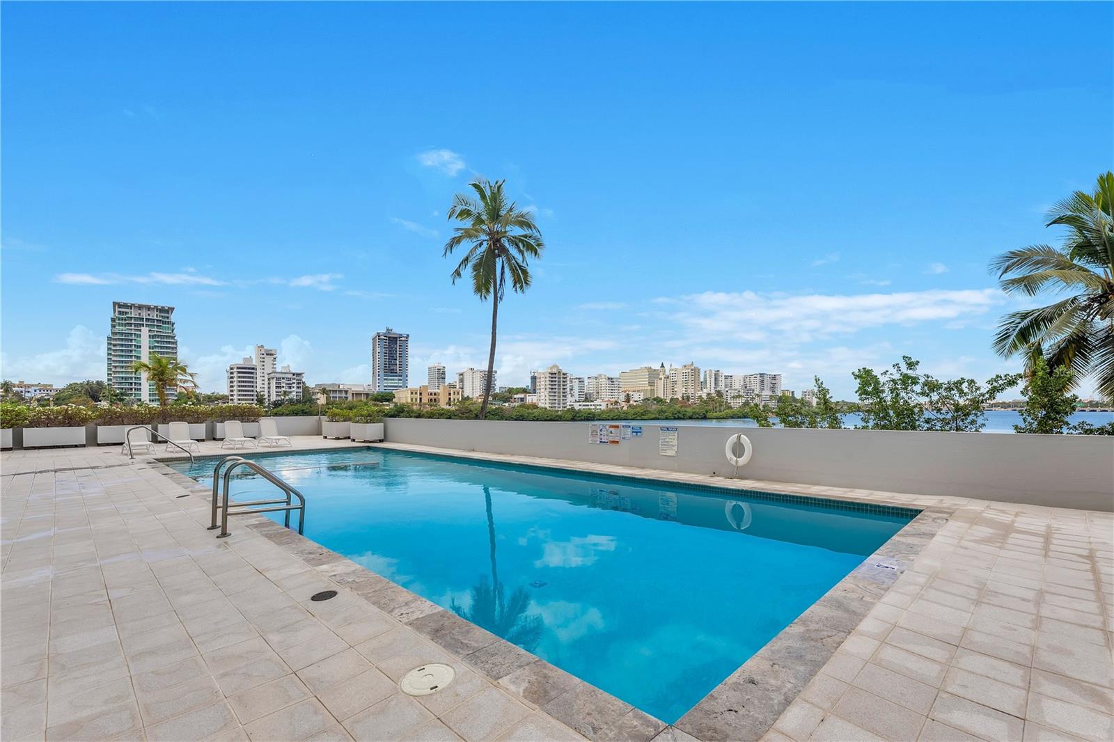 Live where the city meets the water, with an expansive terrace featuring a pool and space for entertaining, a fitness gym, and direct access to the lagoon. The building offers 24-hour security and gated access, providing privacy and security, visitor parking, and EV charging.