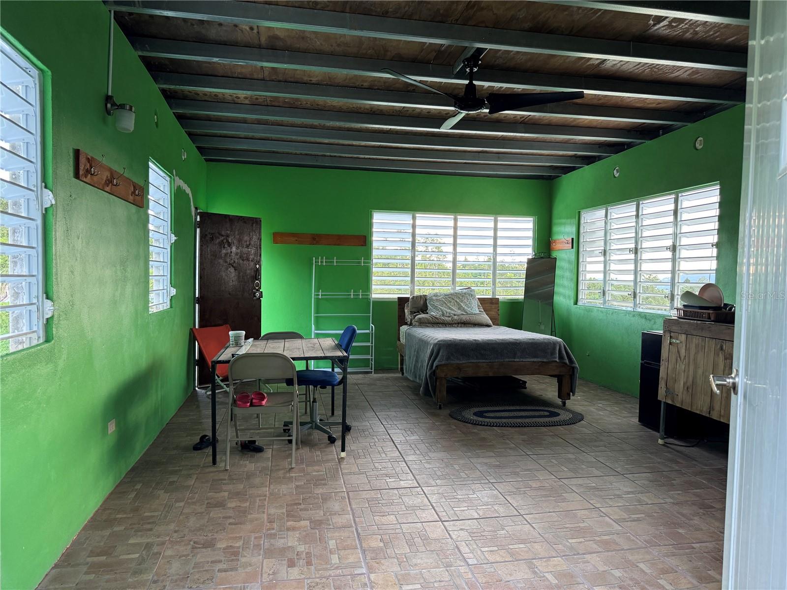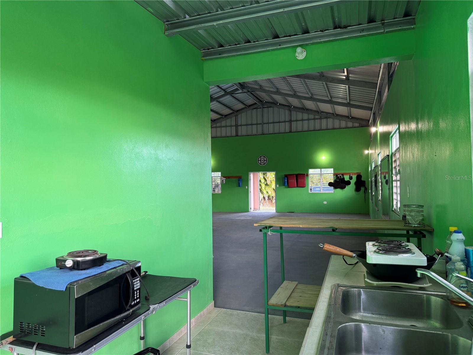 Adjacent to the hangar is a separate 300-square-foot structure, constructed in concrete with a zinc roof, featuring a bathroom and kitchen area—ideal as a guest studio, short-term rental unit, or workspace.